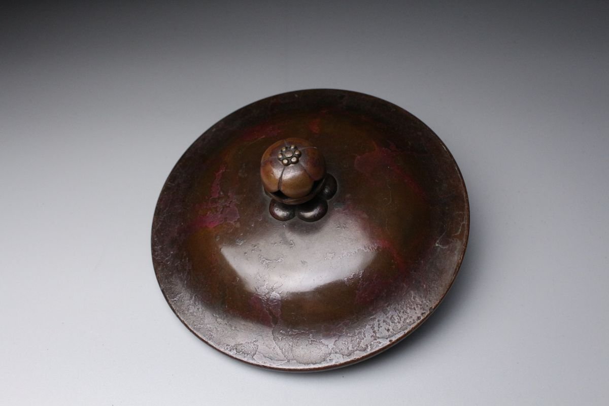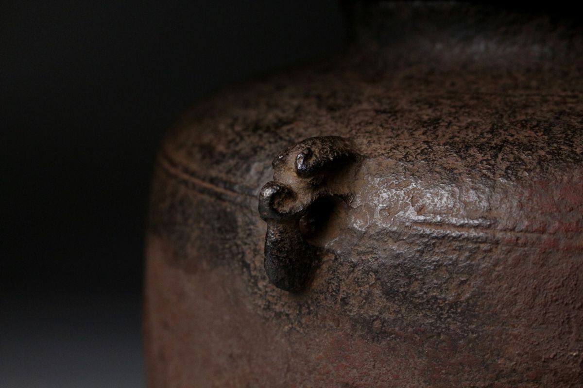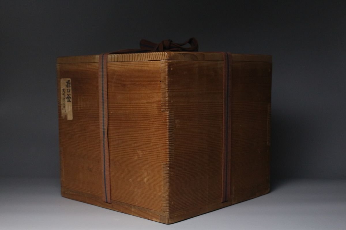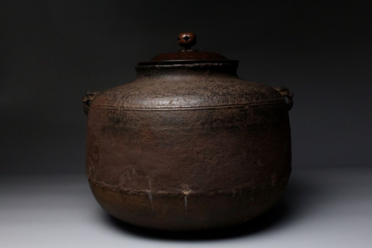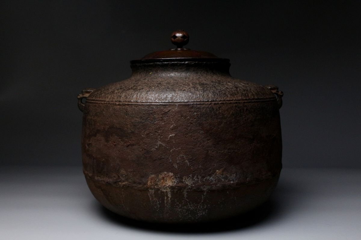[.O]25.11 251106F09T* * * 商品詳細 * * * ここでしか出逢うことのできない唯一の美をご紹介させて頂きます。 作家略歴 西村九兵衛(にしむら くへえ) 江戸初期の釜師 名:家久 西村九兵衛は、江戸初期に活躍した著名な釜師で、千宗旦(1578~1658)の釜師として知られます。 その出自については諸説あり、西村道仁の子、または孫・弟子とも伝えられ、西村道弥の親類であったともいわれますが、詳細は明らかではありません。 幼少期に父と別れたため、後に名越浄味に師事し、その技を磨いたと伝わります。宗旦好みの「蒲団釜」をはじめ、「四方釜」「裏釜」「累座釜」「唐犬釜」「土斎釜」など、茶の湯にふさわしい多くの名作を残しました。 その作風は、端正な作行と柔らかな線の美しさに特徴があり、地肌は砂肌で中荒肌に近いものが多いながらも、仕上げが極めて巧緻なため荒れが見えず、焼抜を施さない“生釜”でありながら、焼抜以上の精妙な仕上がりを誇ると評されています。 寛文七年(1667)銘のある梵鐘が京都・立本寺に現存し、その優れた技術の高さを伝えています。 子はなかったとされ、一代限りともいわれますが、後世には宝暦年間(1751~1763)に西村九右衛門という釜師が現れ、その子が再び「九兵衛」を称して安永年間(1772~1781)に京都油小路で茶湯釜を制作。これを初代九兵衛の流れを継ぐものとし、以後三代にわたり「久兵衛」を名乗ったと伝えられます。 ■商品内容/ 釜、書付箱 ■サイズ/横26㎝×高23.5㎝ 重量:5kg 箱:四方29㎝×高27㎝ ■状態/ 経年によるスレ、傷、汚れ、錆び、剥がれ 箱にスレ、傷、汚れ、底に割れがございます。 ※水漏れはございません。 ※写真にてご確認、ご了承の上ご入札下さい。