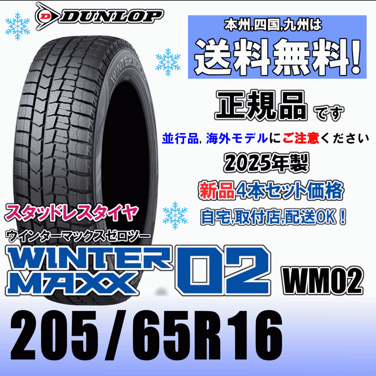 | タイヤ :ダンロップ ウインターマックス02 WM02 ※スタッドレスタイヤです。 サイズ :205/65R16 95Q 状態 :新品、未使用品 正規品です。 本数 :4本 4本必要でしたら個数「1」で入札してください。 | ||