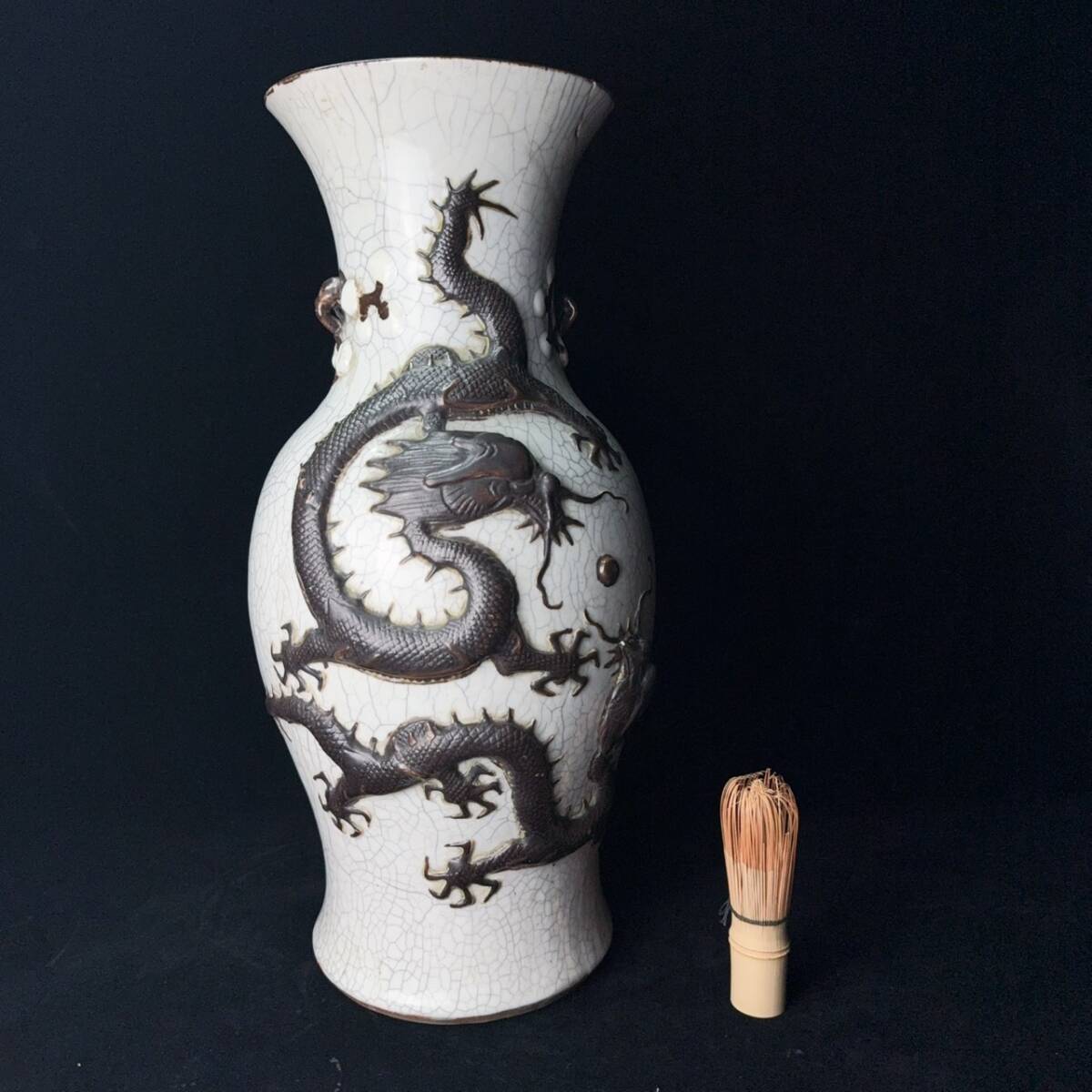 | 中国美術 清時代 哥釉 氷龍図成化年製 唐物中国古玩 骨董品 高さ約43 |
