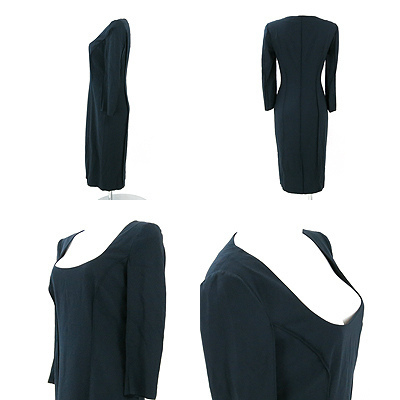 | エレガントなワンピースが入荷致しました! 広めに開いたネックラインはデコルテに、膝を隠す丈は エレガントでオシャレに仕上げてくれます♪ タグ付き、未使用品なのでスタッフオススメの商品です 肩幅約38cmバスト約84cm着丈約100cm袖丈約48cm 【サイズ】:(40) 【素 材】:(レーヨン57% ウール37%) 【 色 】:(紺) 【程 度】:(S) 20101004-006 299 035 | ||||