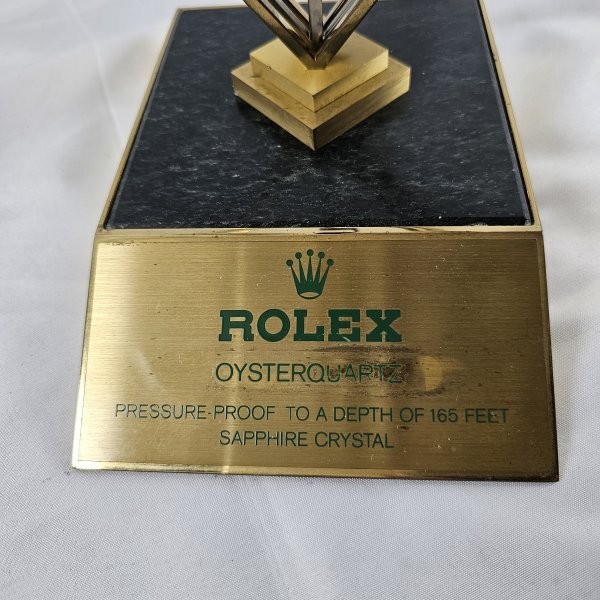 こちらは、ロレックスのオイスタークォーツ向けに作られた、**店頭用ディスプレイスタンド**です。
