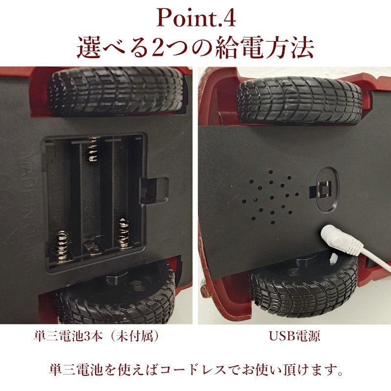![]() クリスマスの夜、プレゼントをいっぱい積んだサンタトラックが走り出す―― そんなワクワク感を閉じ込めた、レトロでかわいらしいスノードームライトです。 鮮やかなレッドカラーのヴィンテージトラックに、サンタクロースとクリスマスツリー、たくさんのギフトボックス。 ドームの中ではキラキラと雪が舞い、内蔵LEDライトが温かな光で幻想的な雰囲気を演出します。 インテリアライトとしても存在感抜群で、リビングや玄関、ツリーの足元などに飾るだけでお部屋が一気にホリデームードに。 大人も子どもも楽しめる、心温まるクリスマスインテリアです。 給電方法は2つ、付属のUSBコードで使用する他、 単三電池3本でコードレスとしての使用も可能! 精巧に作られている為、ライトを点灯させずに 単体でオブジェとして使用しても存在感抜群です! ギフトなどにもおすすめです! ●動作パターン● ・未点灯 ・LED点灯(音楽なし) ・LED点灯(音楽あり) ※乾電池、USB出力用のアダプターは付属しておりません。 点灯時の様子は動画でご覧くださいませ。 動画はこちら ↓↓↓↓↓↓↓↓↓↓↓↓↓ こちらをクリック! カラー:レッド サイズ(約): 高さ14cm×幅28cm×奥行き12cm コード長さ(約):98cm 重量(約):1.7kg 素材:プラスチック 【給電方法】 単三電池×3/USBコード |