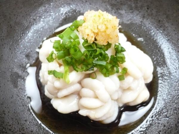 ボイルした白子を紅葉おろしやポン酢をかけて