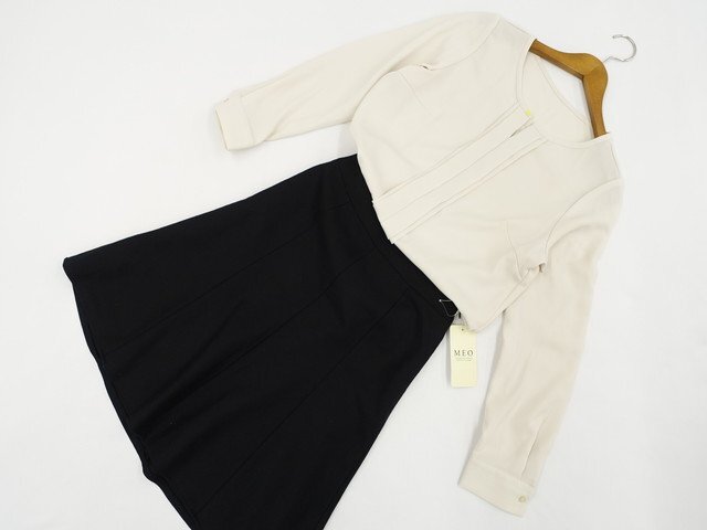 長袖ブラウス+ひざ丈フレアスカート コーディネート上下2点セット S相当 アイボリー/ブラック オフィス・フェミニン系 30代-40代