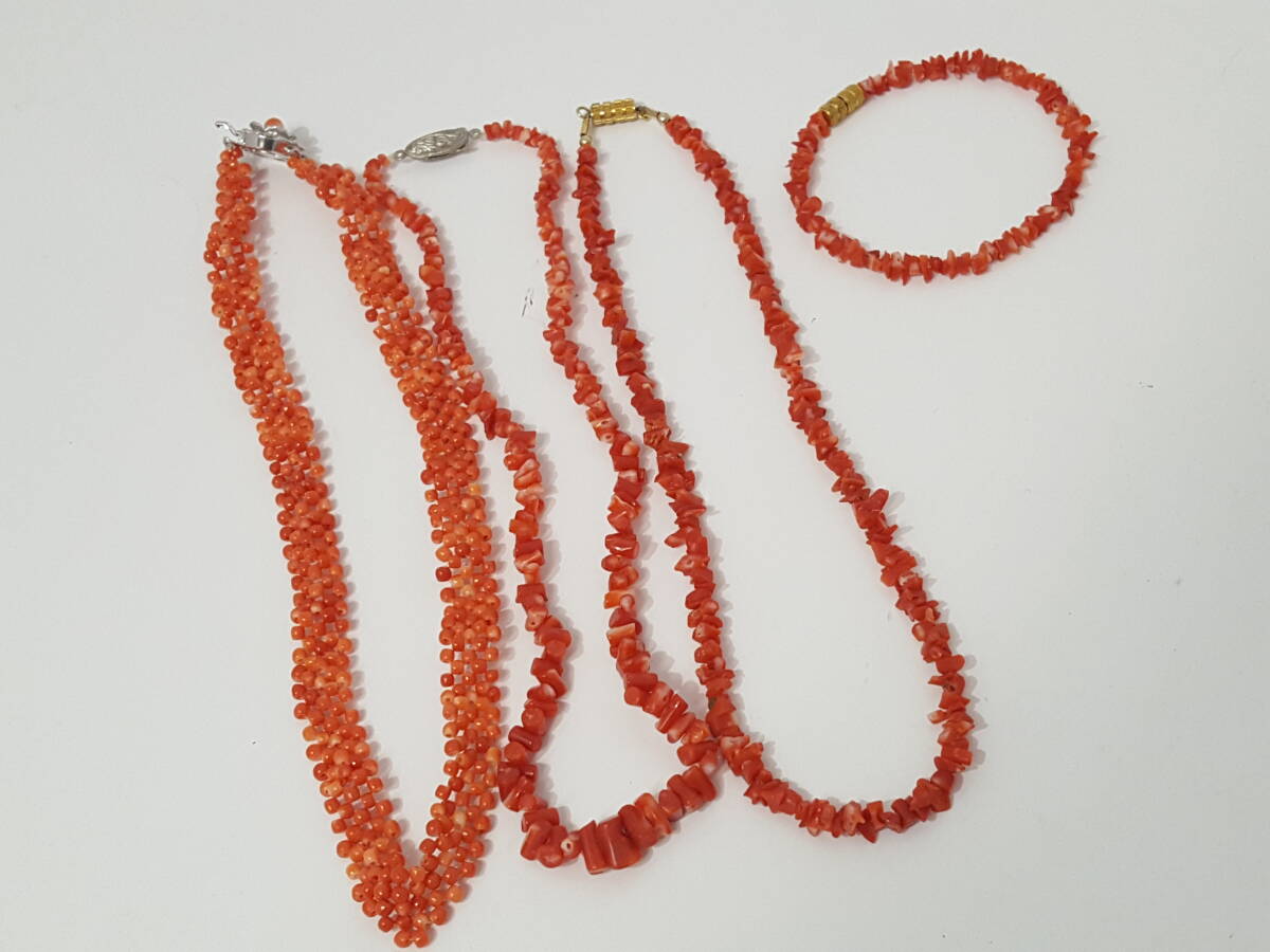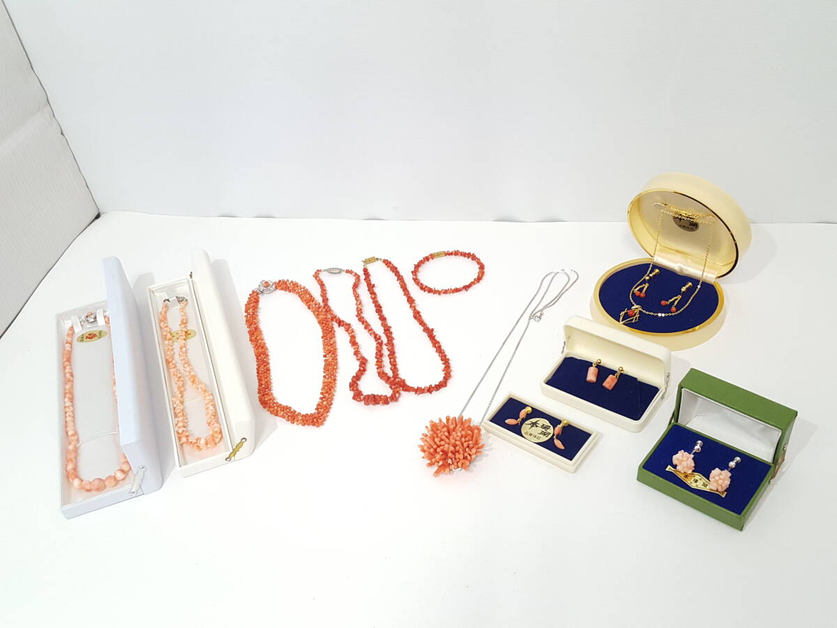 ※佐川急便の場合、離島など別途中継手数料がかかる地域が御座います。 その場合はお振込みを追加でお願いする場合が御座います事、 事前にご了承の程、宜しくお願い致します。 [商品名] 1円スタート 【美品】珊瑚 アクセサリー 合計11点セット [参考サイズ:左] 全長約45cm, サンゴ粒大約0.92cm [素材] サンゴ/シルバーほか [カラー] ピンク系/レッド系ほか [状態] 金属部分にくすみやキズ、金属の変質が御座いますが、 その他は殆ど傷み無い美品です。