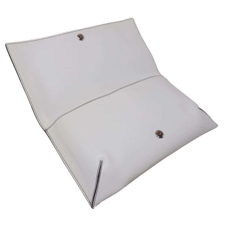 | 素材、カラー | 表地はカーフレザー100%、カラーはオフホワイト、内側にヒートエンボス加工によるロゴ、裏地はポリエステル65%、ポリウレタン35% |