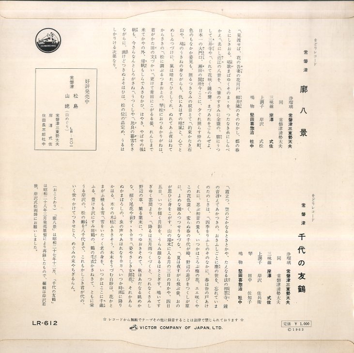 A00380453/10インチ/常磐津三東勢太夫「常磐津 廓八景・千代の友鶴」 [浏览原始页面]