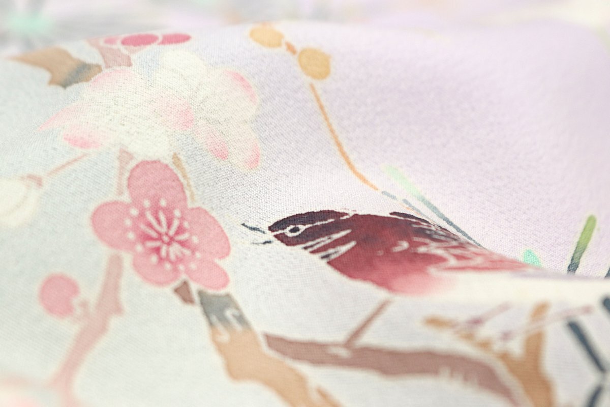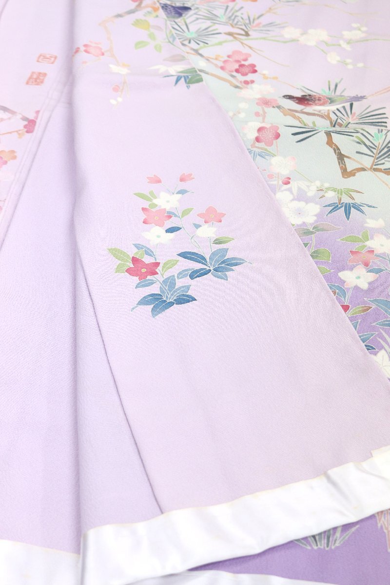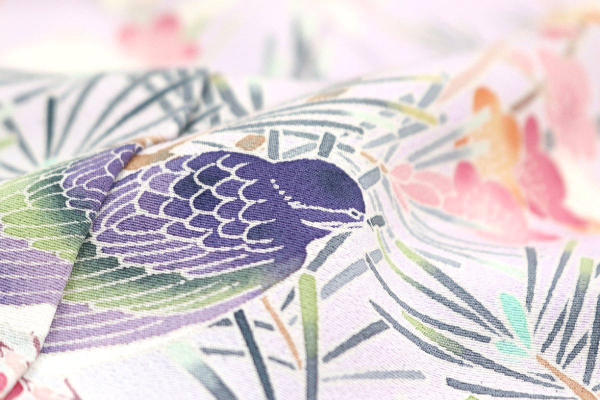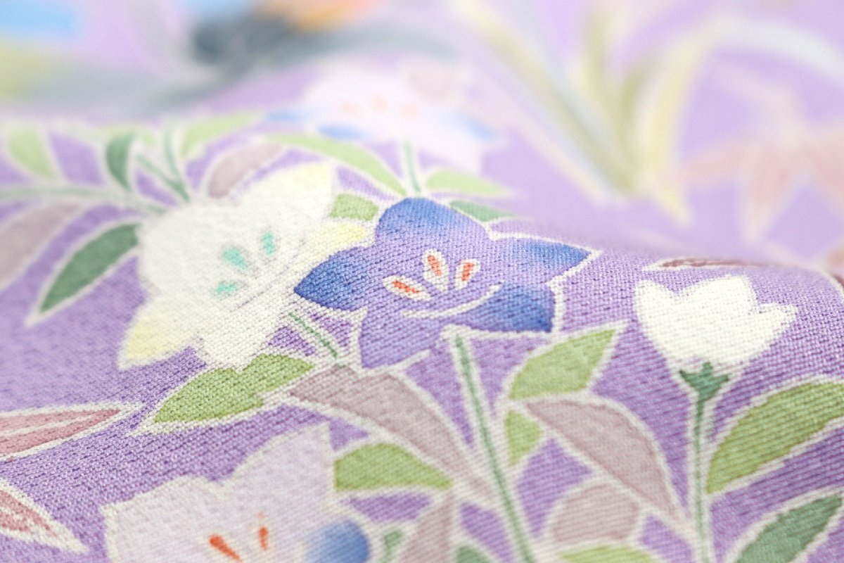 「加賀の華」と題された、丹後ちりめんの生地は、薄紫色のお色目でございます。