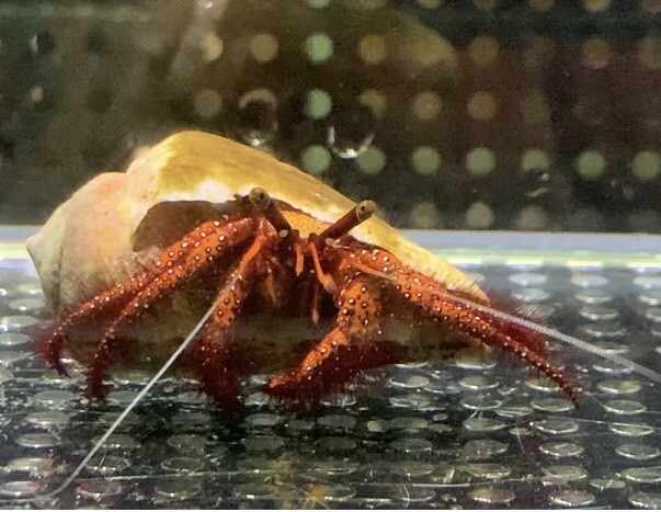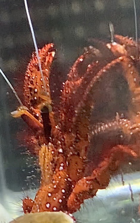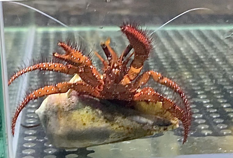 第一弾は真っ赤な姿に白い小紋が美しいコモンヤドカリちゃんです