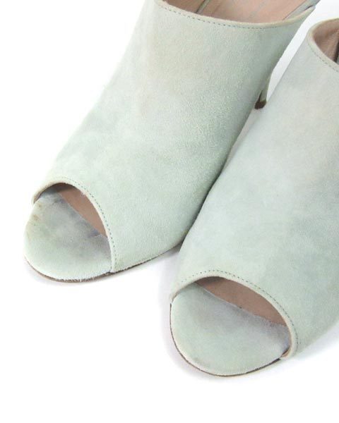 | シンプルデザインのハイヒールミュール。カジュアルスタイルにも、きれい目スタイルにもあわせて頂けるデザイン。3シーズン活躍してくれるアイテムです。薄い水色で、クールなコーディネートが楽しめます。 |