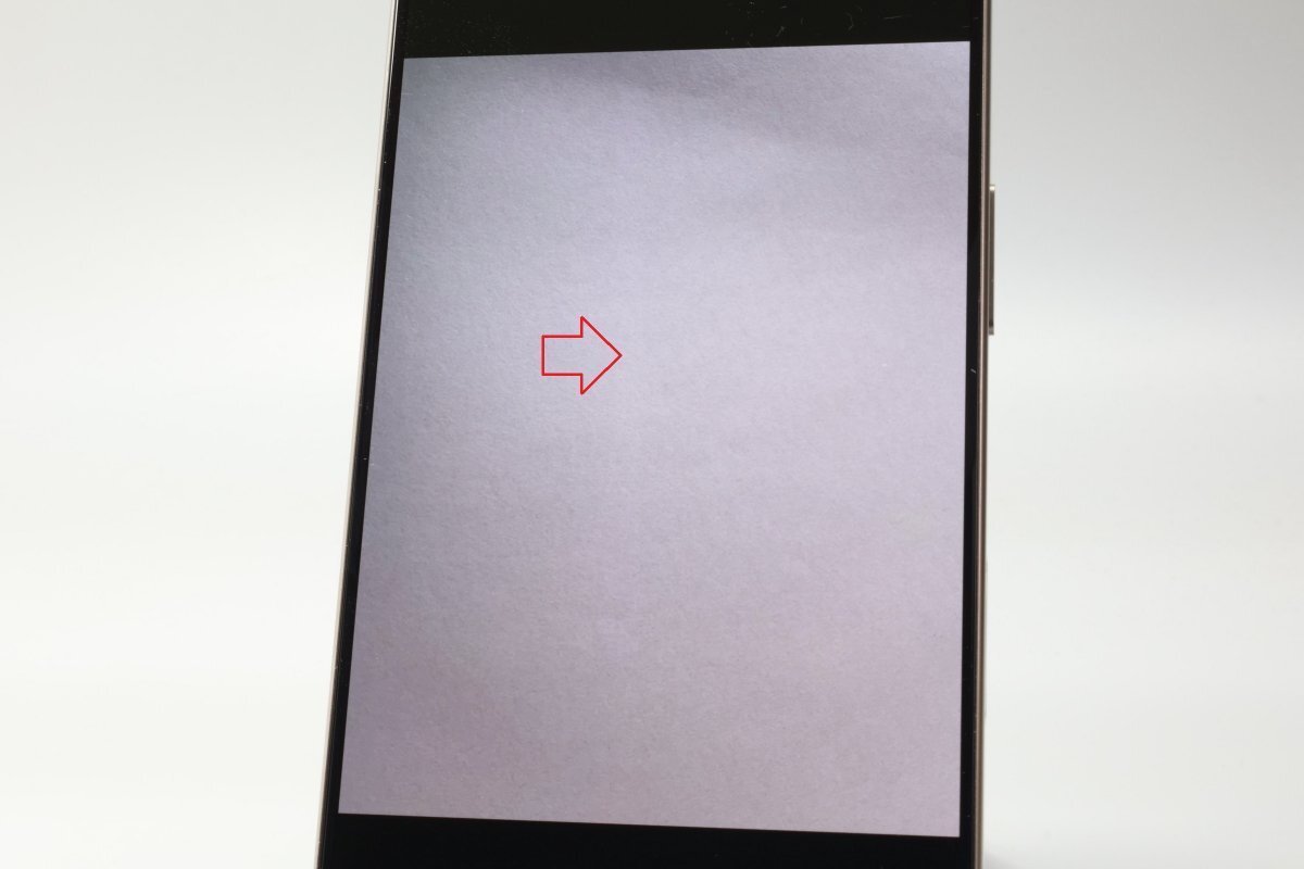 ・インカメラ撮影時、写真ともに縦(赤矢印)に光のラインが写り込みます(写真6 ※インカメラで撮影した写真を撮影してます)