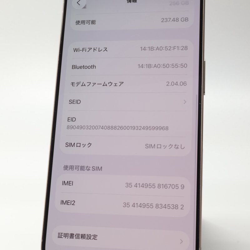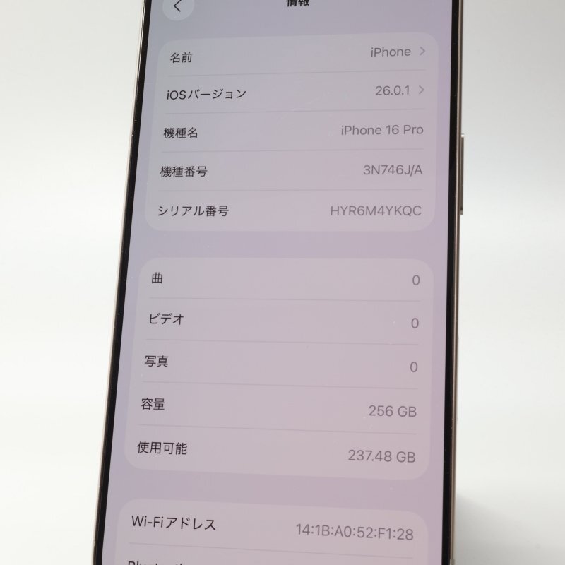店頭展示品です。■機種 : iPhone16 Pro 256GB ナチュラルチタニウム A3292 3N746J/A