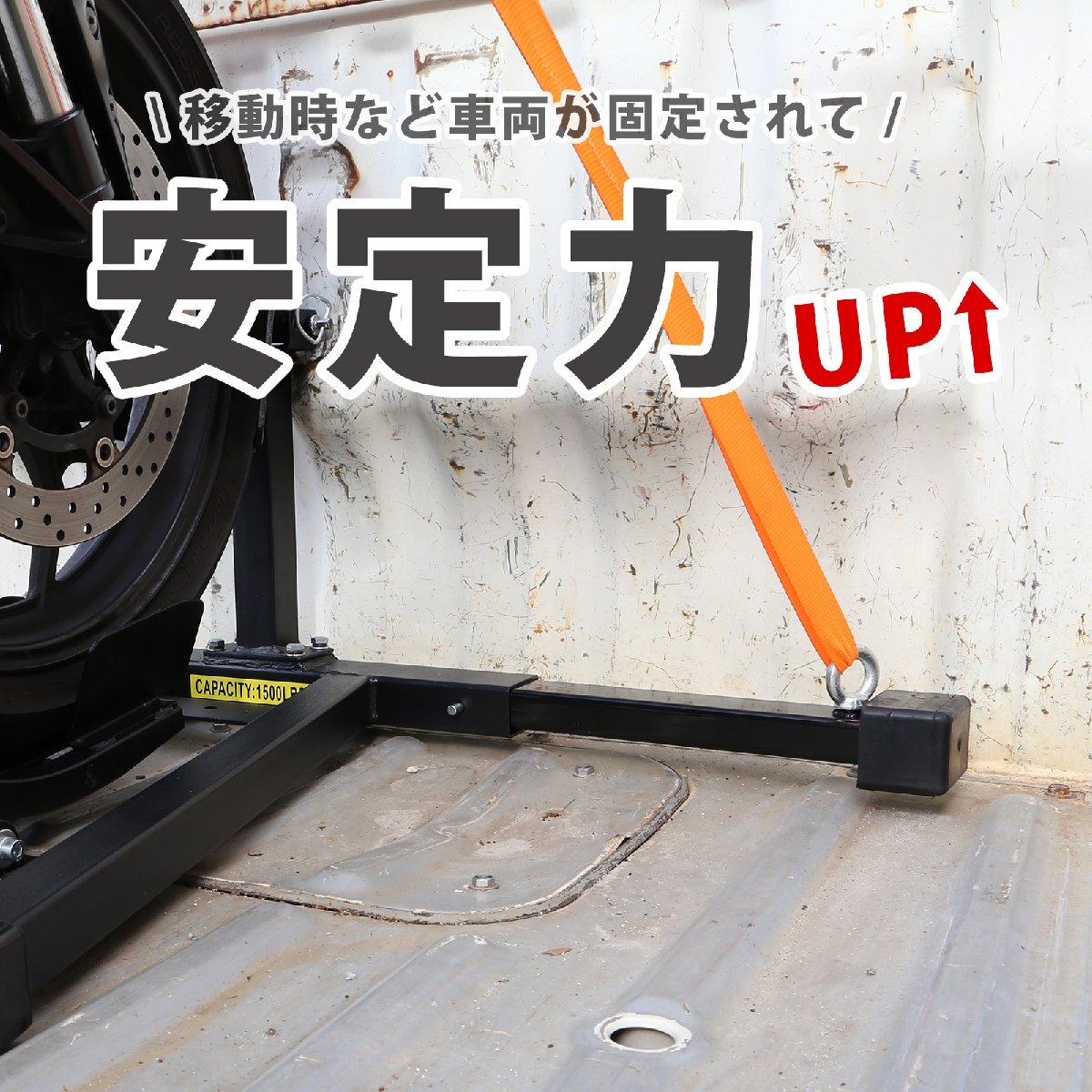 | 特 徴 | アイボルト2個付きなので、別途タイダウンベルトを使用して車両を固定する事が出来ます。 |