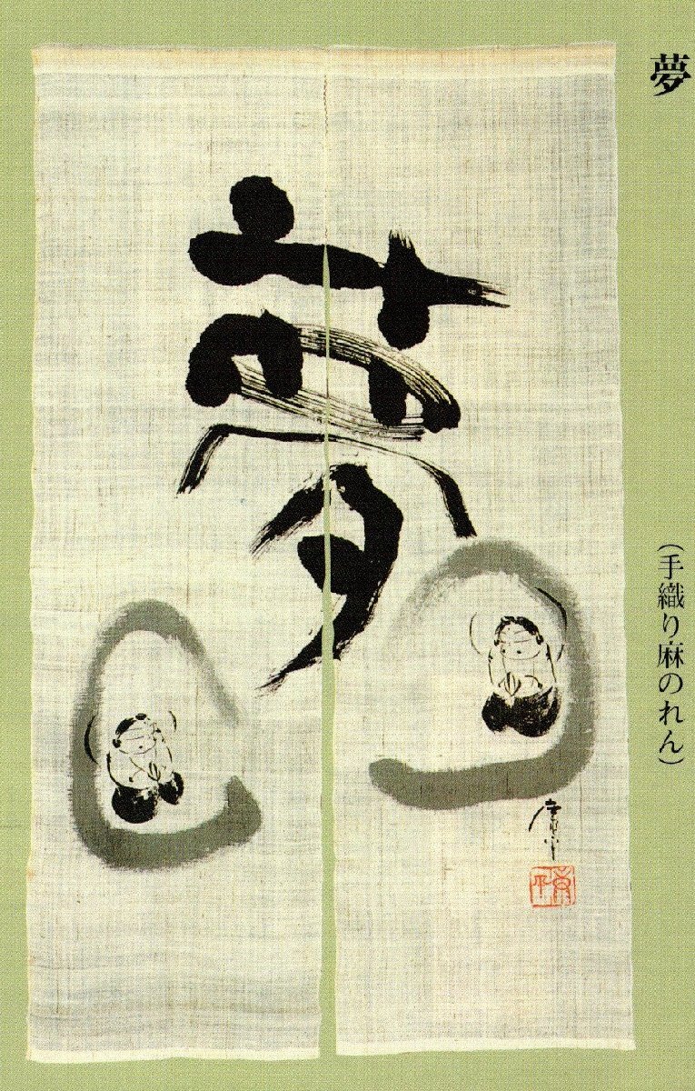 | 真宗大谷派僧侶 高垣康平先生の手織り麻のれん 夢 サイズは縦150㎝×横90㎝。 シルクスクリーン版画の技法で刷られたもので限定版です。 手書きではありません。 未使用品です。 未使用の専用化粧箱に入れてあります タペストリー壁掛け・玄関用としてご利用ください。 | |||