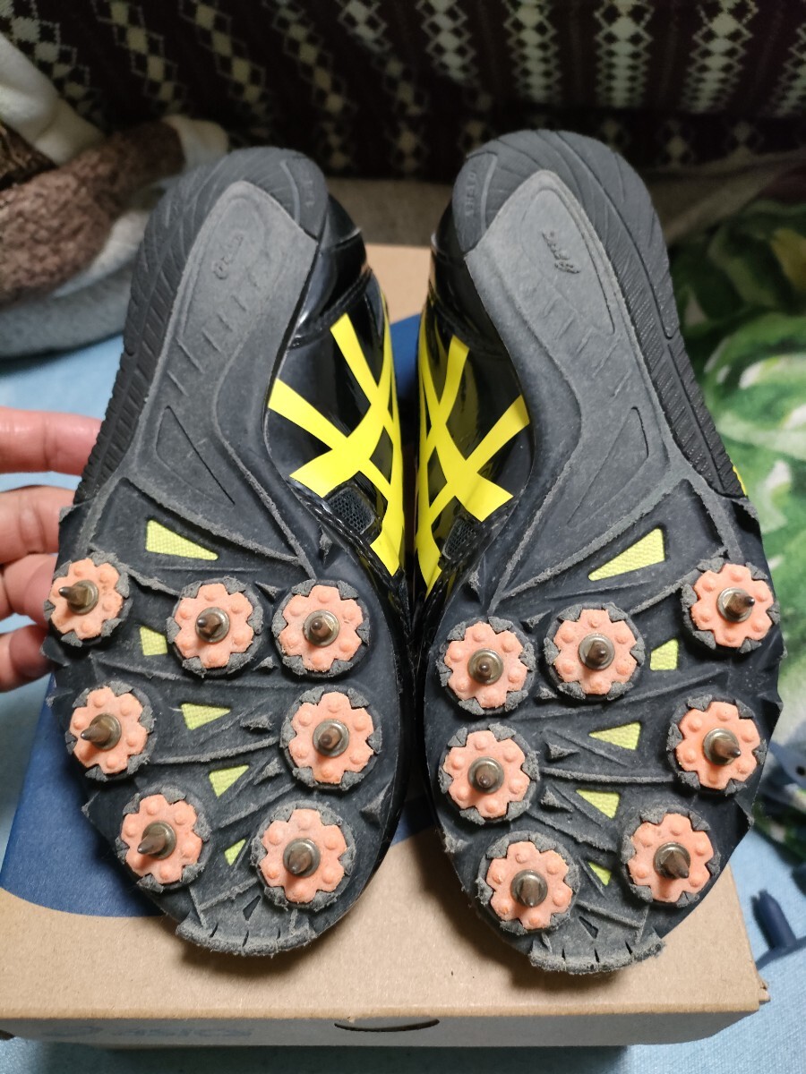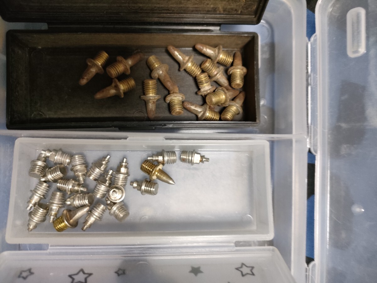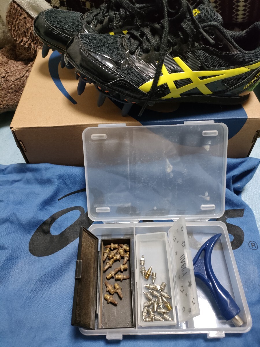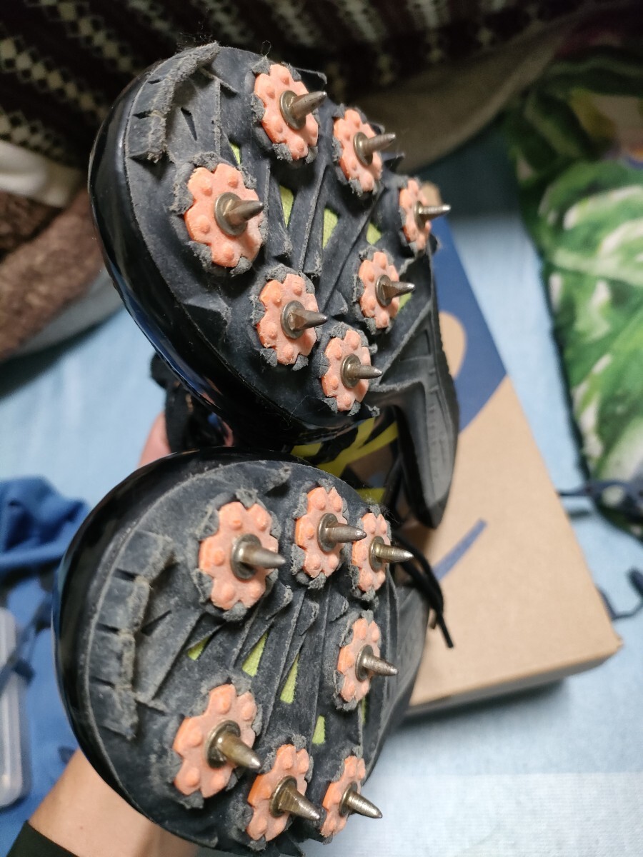 3年前に購入。半年程部活で使用しましたが、まだまだ綺麗な状態だと思います。予備スパイクと交換治具と巾着袋付属。スパイクの種類は忘れましたが、スポーツ用品店で初心者で見繕ってもらいました。元箱はありませんので、違う靴の箱で発送します。
