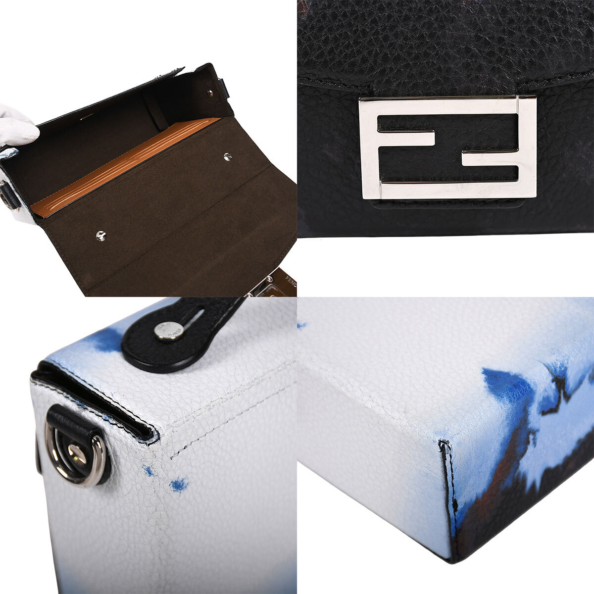 マグネット開閉式で、内側にはカードポケットを6か所備えたデザイン。 FENDIレタリング入りのファブリックを使用した、調節・取り外し可能なショルダーストラップ付き。 お出かけや旅行などデイリー使いに最適なアイテムです。 |