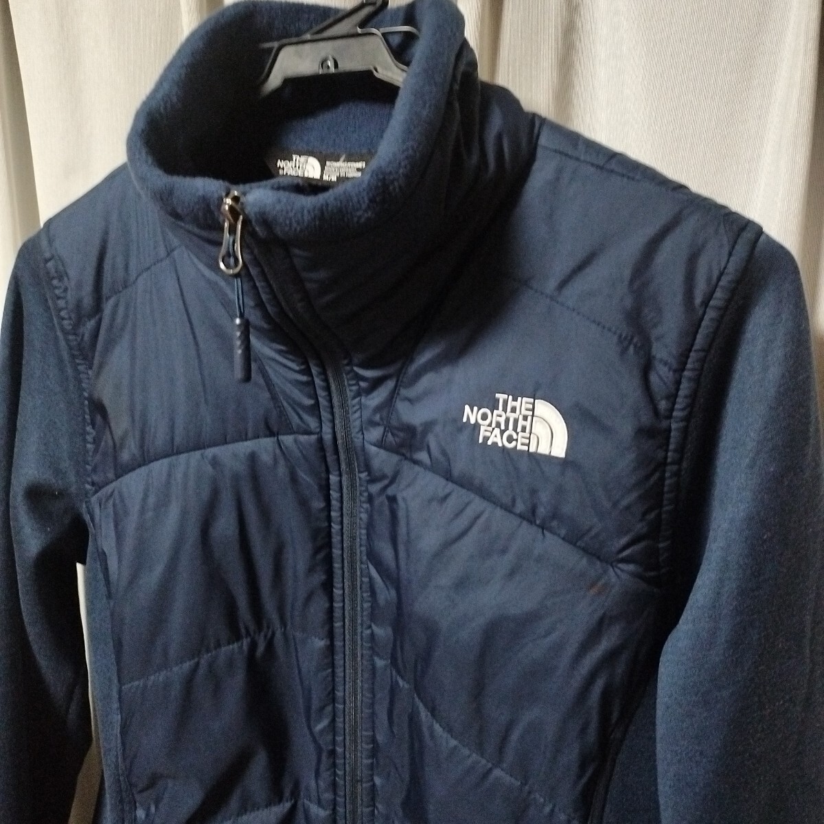 【THE NORTH FACE 正規品 レディース sizeM ノースフェイス ホログラム ソフトシェル/中綿キルト 切り替えジャケット。 サムホールリブ親指穴加工 フルジップアップジャケット。右胸、首後ろにうすい汚れございます。クリーニング済み。脇と腕部分はソフトシェル。キルト部分、中綿が入っている軽量防寒ジャケット。| 出价者 | 信用 | 价格 | 时间 |