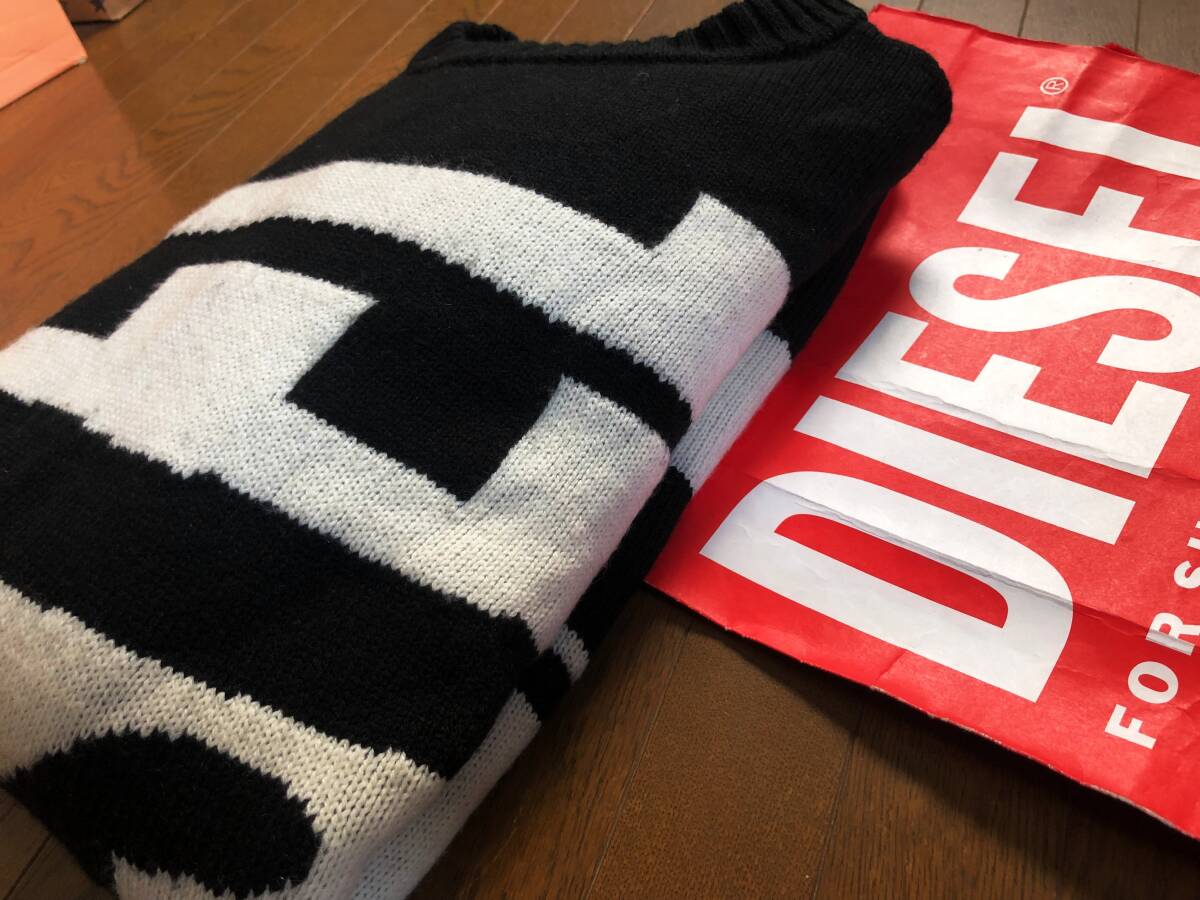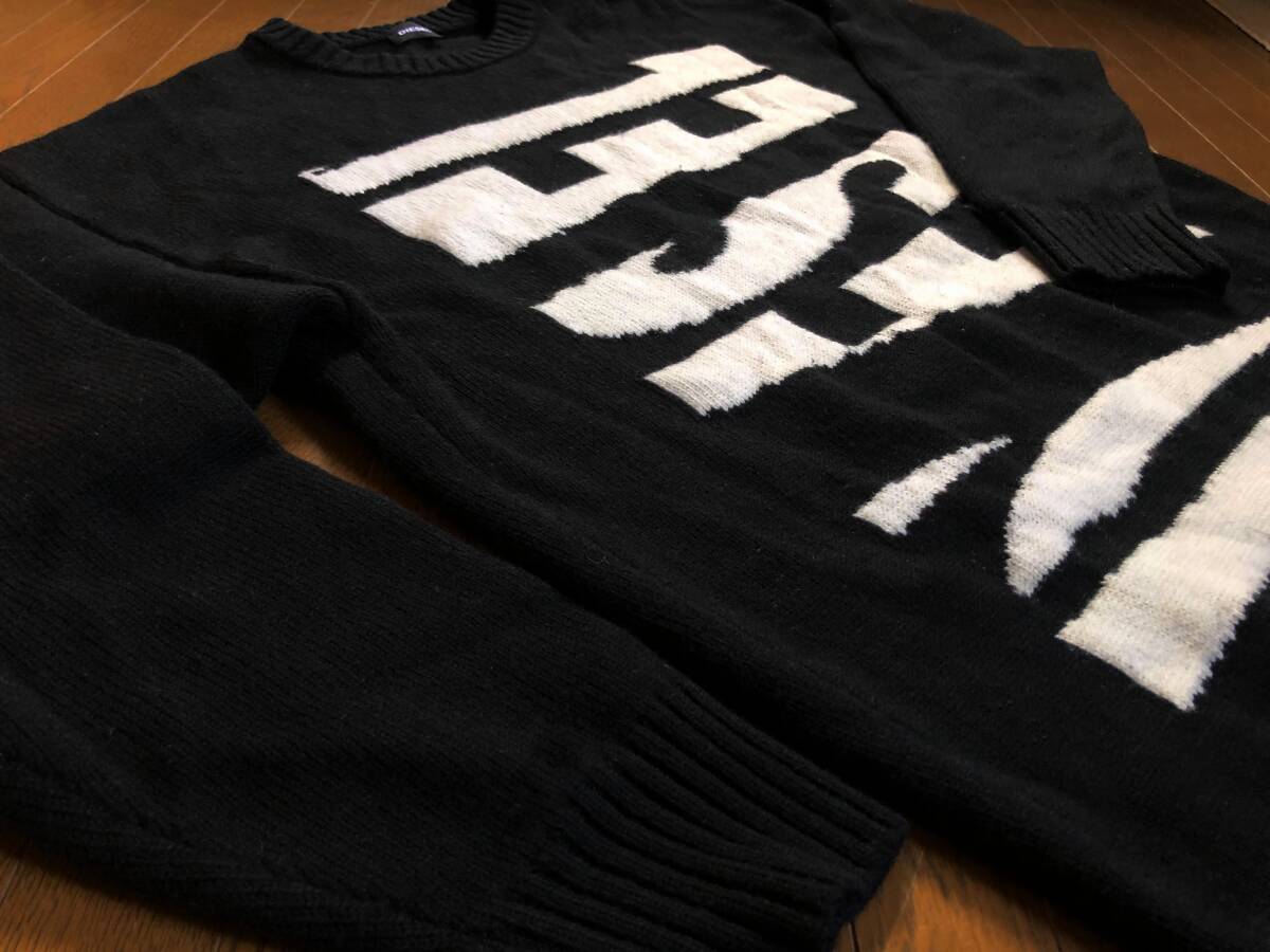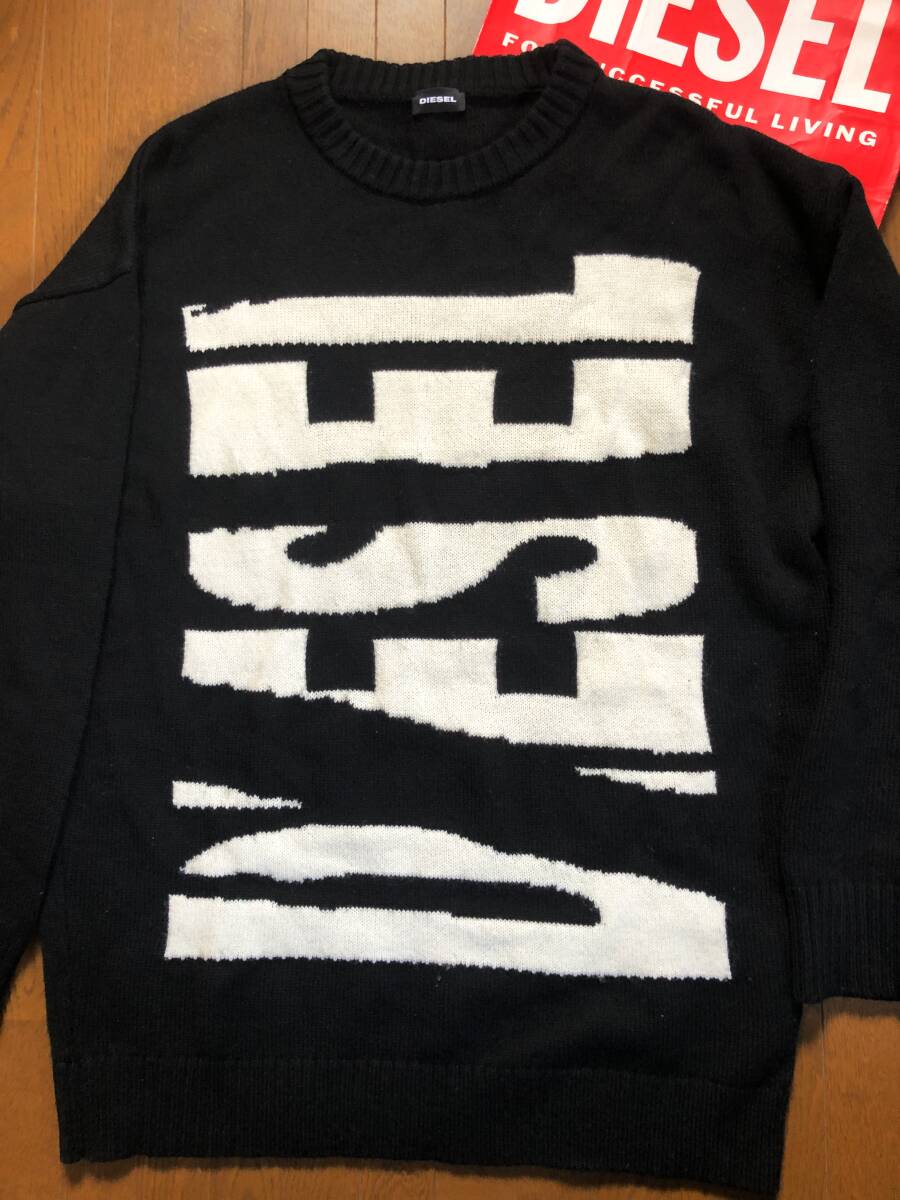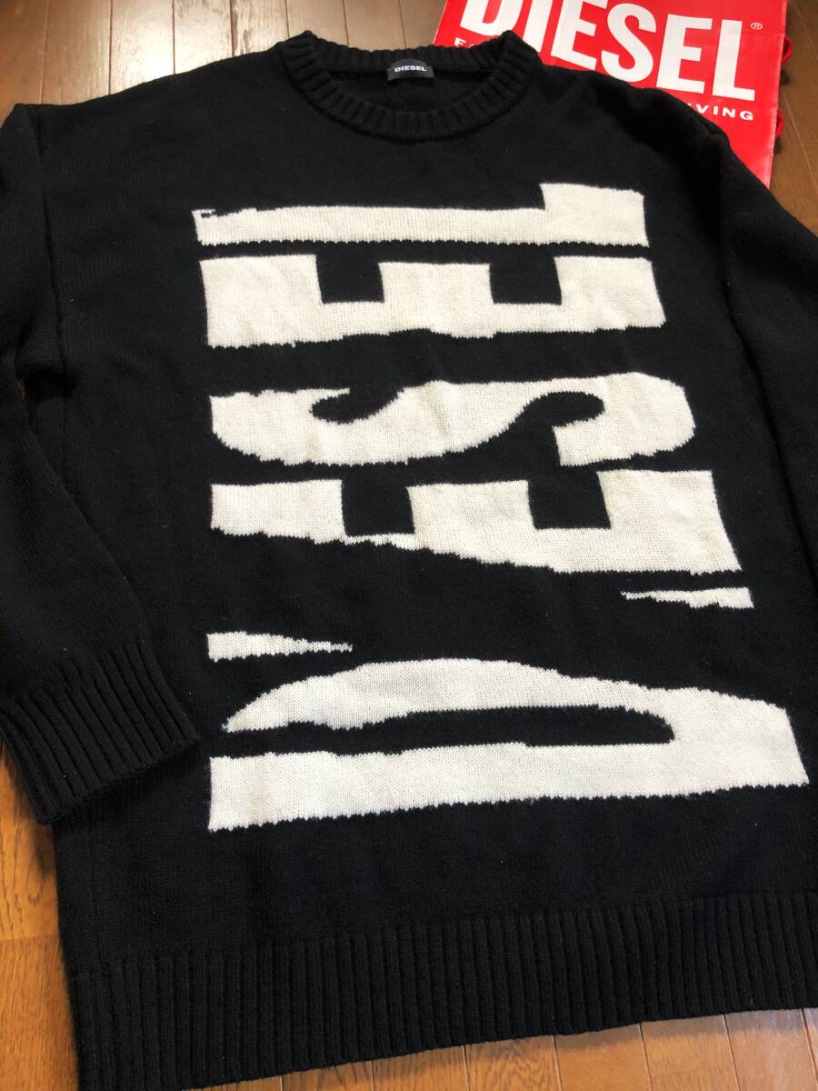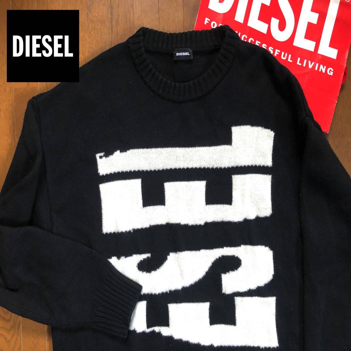 ●大人気のDIESEL ディーゼル イタリー製 高級 ビッグロゴ ニットセーター 黒 メンズ