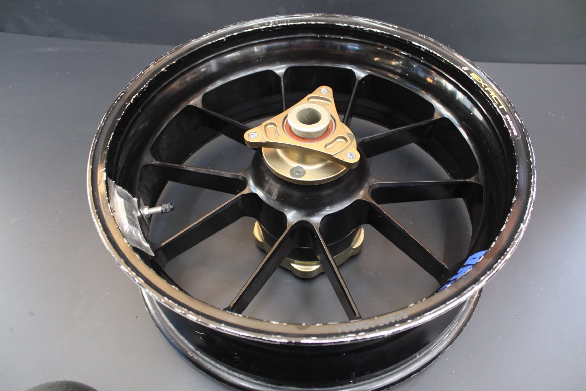 YZF-R1(14B)2012年式 実働レーサーから取り外しのEXACT製アルミ鍛造リアホイール 6.00-17の中古です。ヤマハキット寸法です。出品中の耐久用チェーンアジャスター、アクスルセットにて装着しておりましたがハブ、ローターは欠品です。キズ、汚れ等ありますがワレ、曲がり等は無く使用可能品です。中古につきノークレーム、ノーリターンでお願いします。他にも同車種、その他車輌からの取り外しの部品を多数出品しますのでご覧ください。発送は 元払いにて発送いたします(落札後、ご計算致します。基本的にはヤマト運輸です。)200サイズを超えるものは佐川急便着払いにて発送致します。