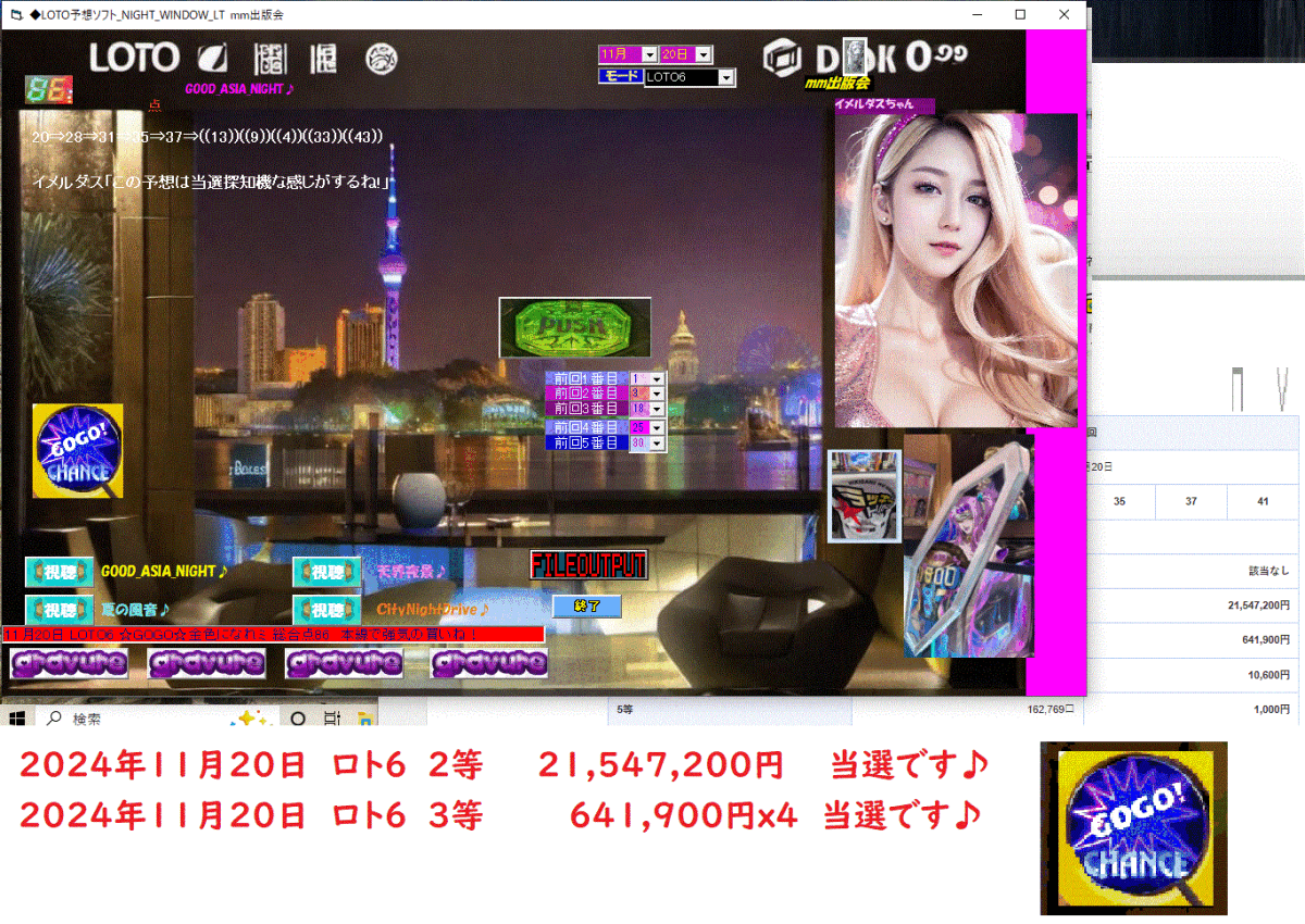 [◆LOTO予想ソフト_NIGHT_WINDOW2025_LT][イメルダス「この予想は当選探知機な感じがするね!」]