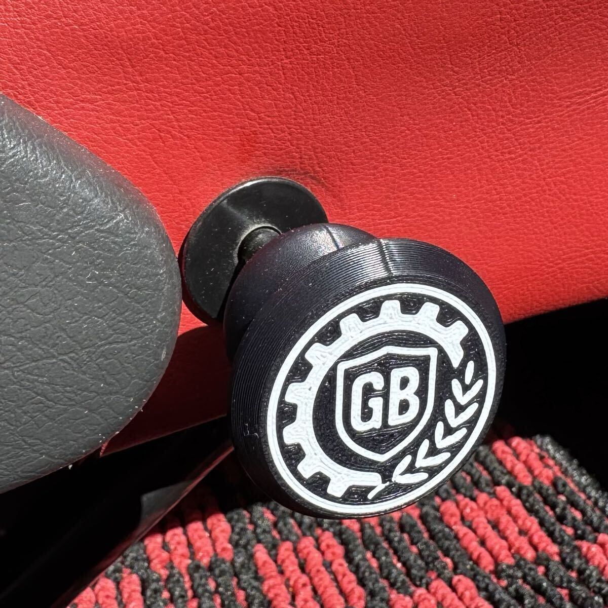 11月に浜名湖で行われたミニデイで入手したローバーミニ専用設計の純正シート用のシートをチルト(後部を持ち上げる)ノブです。純正の味気ない黒くて小さいノブを、カッコいいノブに交換するものです。ねじ込むだけで、交換できます。