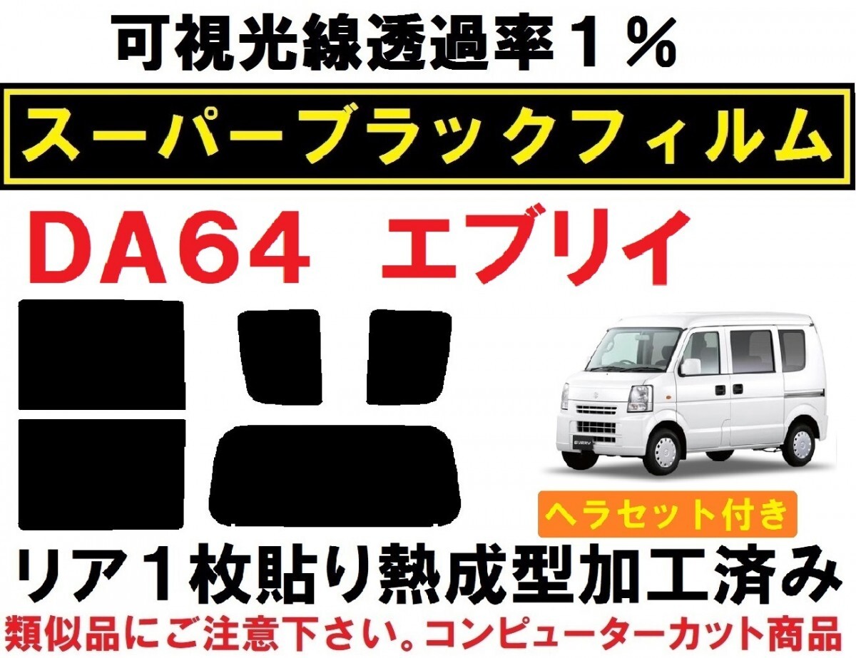 DA64エブリイ バン・ワゴン用スーパーブラック『可視光線透過率1%』1枚貼り成型加工済みフィルム、 リア5面セットです。(専用施工液付き) 平成17年~ 27年 DA64V・DA64W、全グレードに対応出来ます。 バン・ワゴン 標準ルーフ・ハイルーフなどにより、ガラスの種類が複数有るため ご落札後お車の詳細を質問させて頂き、適合する商品をご用意させて頂きます。 ※適合等 ご不明な点など有りましたら、お気軽にご質問下さい。 ◇◆◇当商品には、画像2のヘラセットが付属します◇◆◇ ■滑りの良いシリコンタイプのゴムヘラ スムーズに水切り(清掃)・貼り付け後の水抜きが出来ます。 実際の業務でも色々な物を試しましたが、シンプルなこの形状・このメーカー・このグレードの物が1番使いやすいです。 柔軟性が有りガラス(フィルム)に密着するため、フィルム折れも防げます。 ■使いやすい厚みとコシの有るプラヘラ 形状は似ていても各メーカーにより硬さ・厚みなど色々と有ります。 慣れていない方でも扱い易いように少々柔らか目の物になります。 ヘラ先にはフッ素樹脂加工のクロスを貼って有りますので、滑りが良くキズを防止します。 ■ワイプオール(不織布ワイパー) 布同様の丈夫さと紙の持つ吸水性を発揮。糸くずの発生が無く均一素材のため異物混入の心配が有りません。 施工前のガラスクリーニング~施工時にフィルムが触れる可能性の有るガラスの周りのゴム部品の拭き取り清掃~吸水等に大変便利です。 全て実際の業務に使用している物で、その中から使いやすい物を選んでいます。 ヘラセットがご不用の場合、フィルムのみの商品も有ります。こちら ◇◆◇精密コンピューターカット◇◆◇ 貼りやすさを最優先に各部のサイズ・形状など微調整し、改良を重ねた独自のデータを製作。 高精度な最新・大型カッティングプロッターによるカットで正確で滑らかなカットラインを再現しています。 施工業者だからわかる、貼りやすいサイズ・形状に仕上げています。 ◇◆◇リア1枚貼り成型加工済み◇◆◇ リアガラスの湾曲に合わせて熱成型加工して有りますので、平面に貼るのと同様にたるみが出ず1枚貼り出来ます。 通常の成型加工に加え、独自の加工を施し しっかりと成型加工してありますので、追加工など一切不要です。 ◇◆◇精密コンピューターカット◇◆◇ 貼りやすさを最優先に各部のサイズ・形状など微調整し、改良を重ねた独自のデータを製作。 高精度な最新・大型カッティングプロッターによるカットで正確で滑らかなカットラインを再現しています。 施工業者だからわかる、貼りやすいサイズ・形状に仕上げています。 ◇◆◇リア1枚貼り成型加工済み◇◆◇ リアガラスの湾曲に合わせて熱成型加工して有りますので、平面に貼るのと同様にたるみが出ず1枚貼り出来ます。 ※最適な状態に成型加工して有りますので、ヒートガン(ドライヤー)等は不要です。 ◇◆◇専用施工液付属◇◆◇ 軽視されがちな施工液ですが、貼りやすさに大きく関わる部分になります。中性洗剤などで代用せず、必ず付属の専用施工液をご使用下さい。 濃度については車種・季節などにより変わりますので、個別にお知らせ致します。 ◇◆◇業務用高品質フィルム使用◇◆◇ 使用しているフィルムは、安心の国内メーカー 業務用高品質フィルム「ニュープロテクション」シリーズです。(可視光線透過率1%) 業務用フィルムの中で最も濃いタイプで、紫外線99%カット 遮熱性も高めです。 同シリーズで可視光線透過率 5% 10% 15% 25% の物もご用意出来ます。 ご希望の場合は、ご落札後濃さの指定をして下さい。(部分的な色変えも可能です) ご指定の無い場合、全て1%になります。 部分的にフィルムが必要になった場合、単品販売も承ります。 他にもエブリイ用フィルム、各種出品中です。こちらもご覧ください。 下記のOEM車両にも適合します。 ・マツダ スクラム バン・ワゴン(DG64V・DG64W) ・日産NV100クリッパー・クリッパーリオ(DR64V・DR64W) ・三菱ミニキャブバン・タウンボックス(DS64V・DS64W) ご不明な点など有りましたら、お気軽にご質問下さい。 | ||