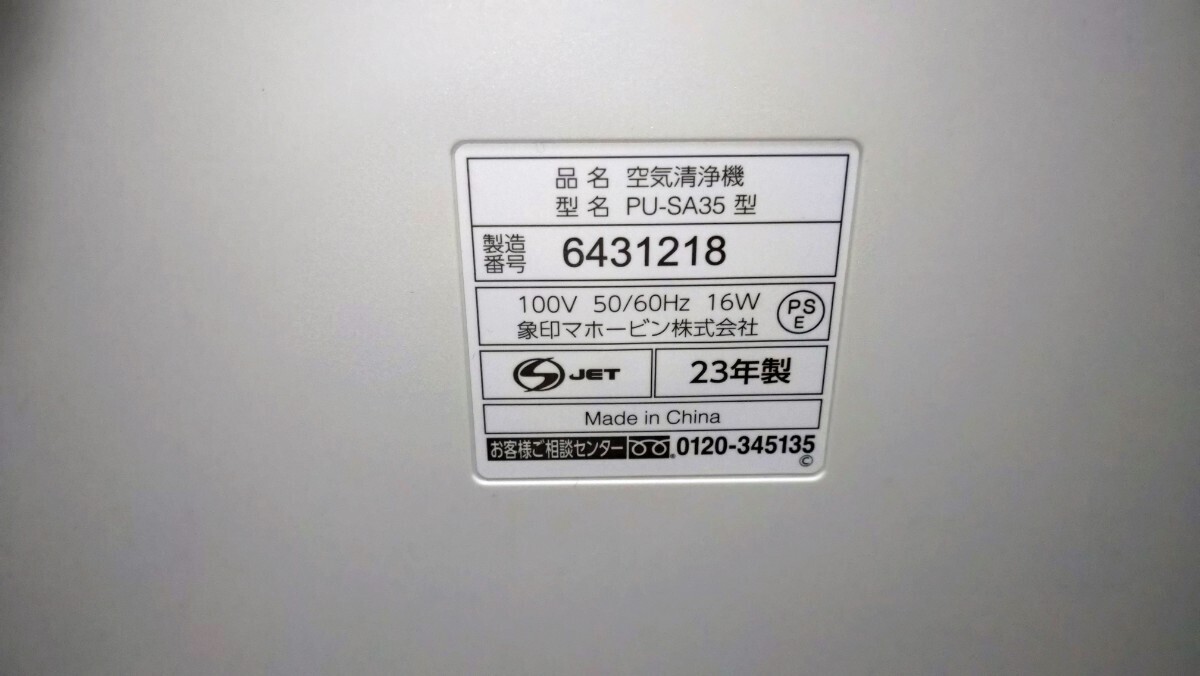 ZOJIRUSHI 象印 空気清浄機 PU-SA35 2023年製の出品になります。