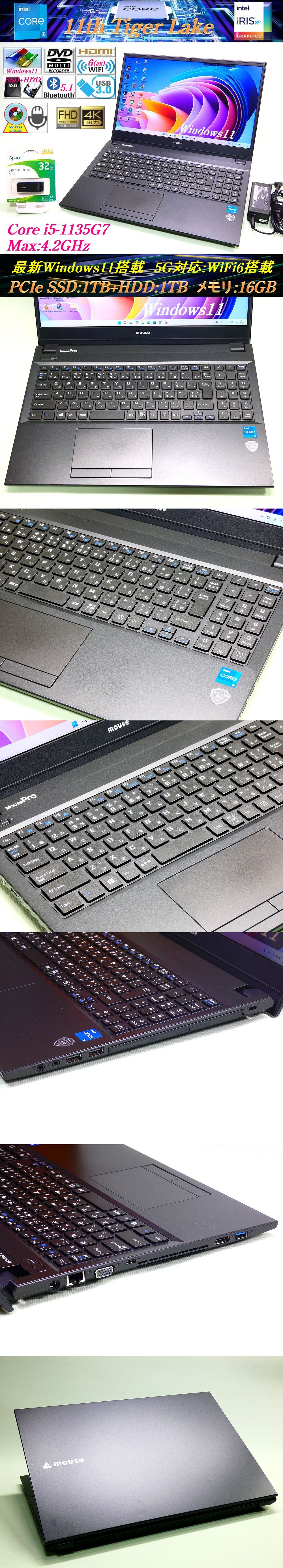 【特徴】:超高性能、超高速、最新多機能(内蔵3ドライブ仕様)パソコン -高年式2022年9月モデル →Windows11正式対応モデル -Windows11最新バージョン 25H2搭載 -インテル 第11世代CPU Core i5-1135G7 -インテル Iris Xe Graphics -大容量 SSD/1TB(M.2, NVME, PCIe) -大容量 HDD/1TB(SATA600) -DVDマルチドライブ -大容量 メモリ/16GB(DDR4-3200) -USB3.1 Type-C コネクタ -WiFi6(ax)対応&Bluetooth5.1 -オールセットアップ済。即使用OK!! →充実したマニュアルも標準添付 マウスコンピューターについて パソコン専門の国内製造のブランドで、高性能かつ高機能なパソコンの製作に定評があります。 基本性能の充実はもちろん、拡張性や音響、メンテナンス性など多角的な設計が高く評価されており、根強い人気を誇ります。 特に注目すべきトレンドは、拡張性を最大限に活かした「内蔵3ドライブ仕様」です。 これは高速なNVMe SSD、大容量のSATA バックアップ用途のHDD、そして光学ドライブを組み合わせた構成で、パフォーマンスとストレージ容量の両立に加えディスク記録も可能にしています。 第10世代と比較して、CPU性能は約1.5倍、グラフィックス性能は約3倍に向上。処理能力が飛躍的に進化し、高画質な動画編集や動きの激しいゲームも快適に楽しめます。 さらに、PCIe対応の超高速SSDを搭載。OSやアプリをSSDに配置することで、起動時間を大幅に短縮し、複数のアプリを同時に使う作業もスムーズにこなせます。 加えて、高速DDR4メモリ(デュアルチャネル対応)を採用し、データ処理のさらなる高速化を実現。日常使いからクリエイティブな作業まで、あらゆるシーンで快適なパフォーマンスを発揮します。