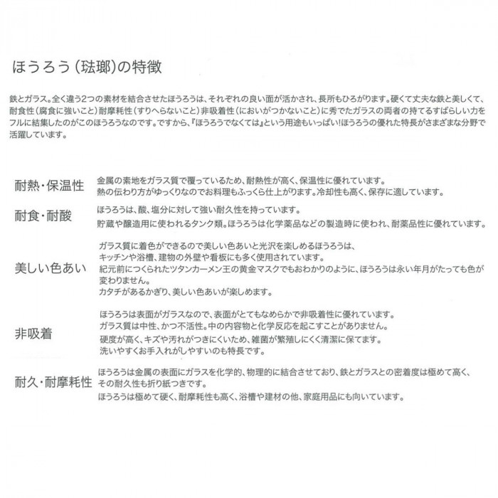 | 素材・材質 | 本体:ほうろう用鋼板 |
