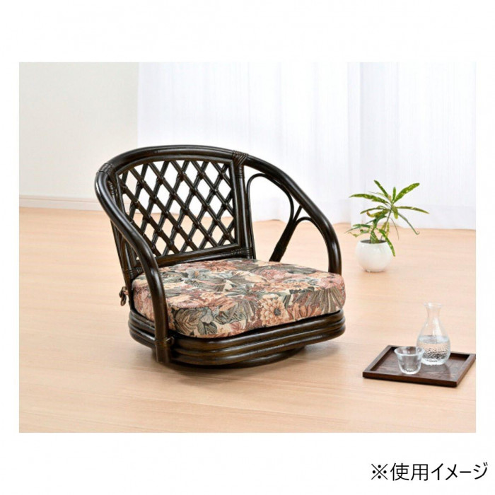 | 座ったまま体の向きが変えられる便利な籐回転座椅子です。飽きのこないダークブラウン色です。 |