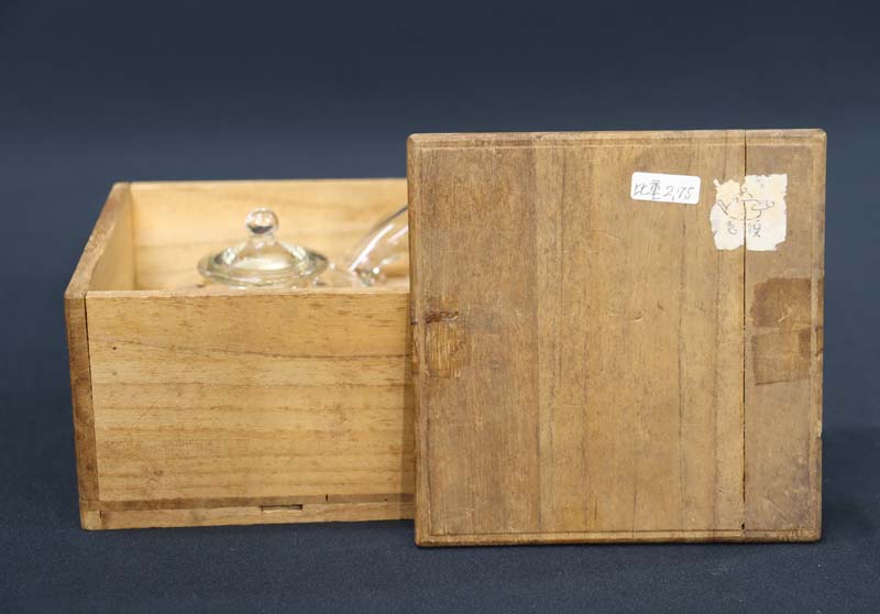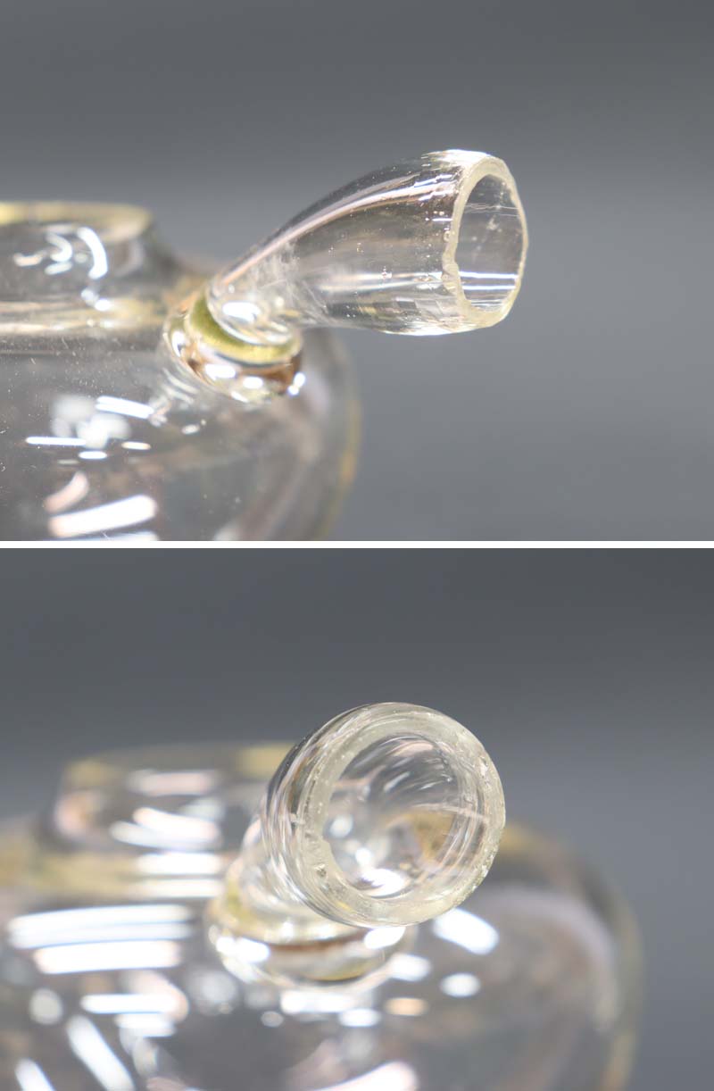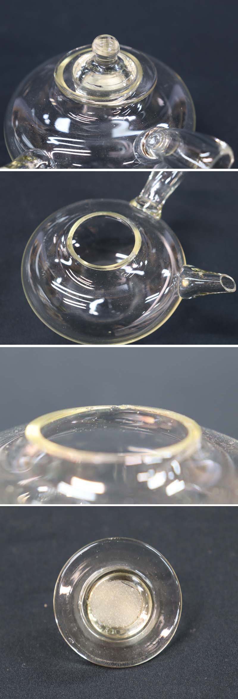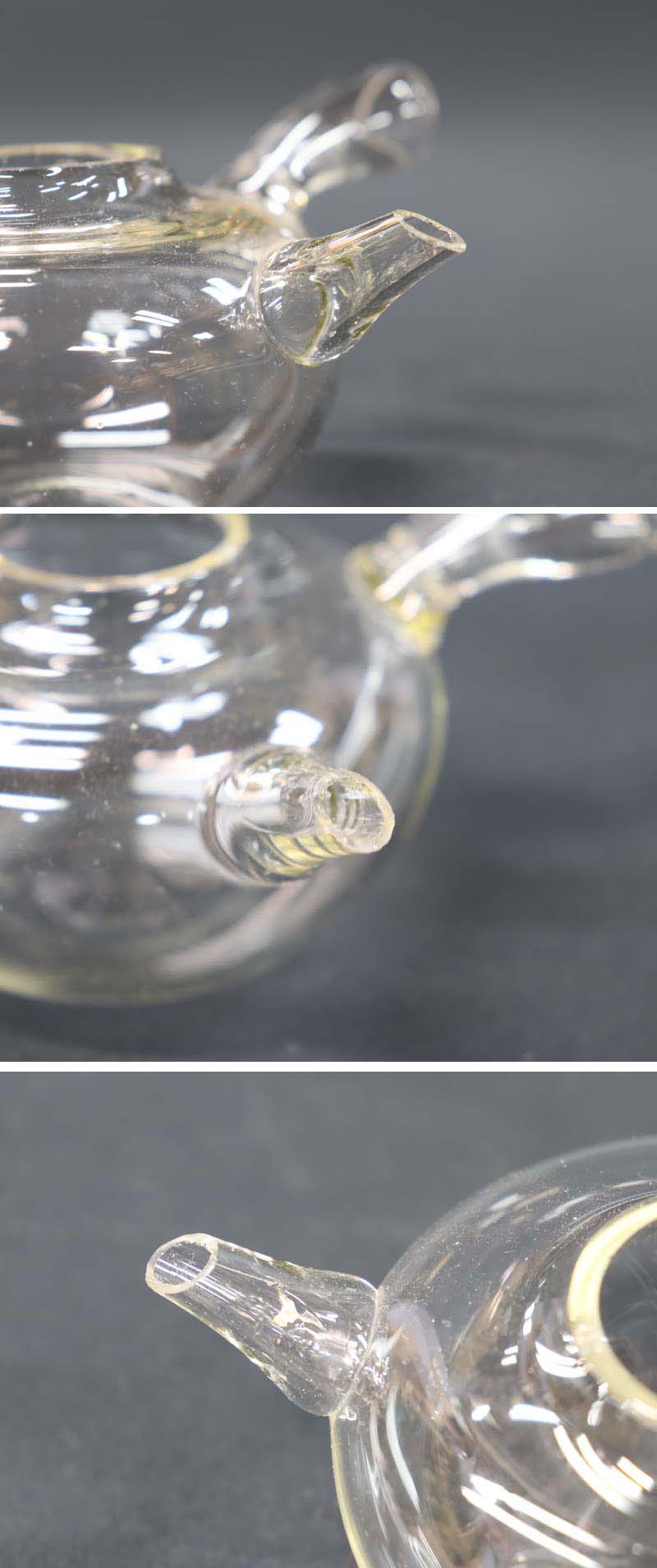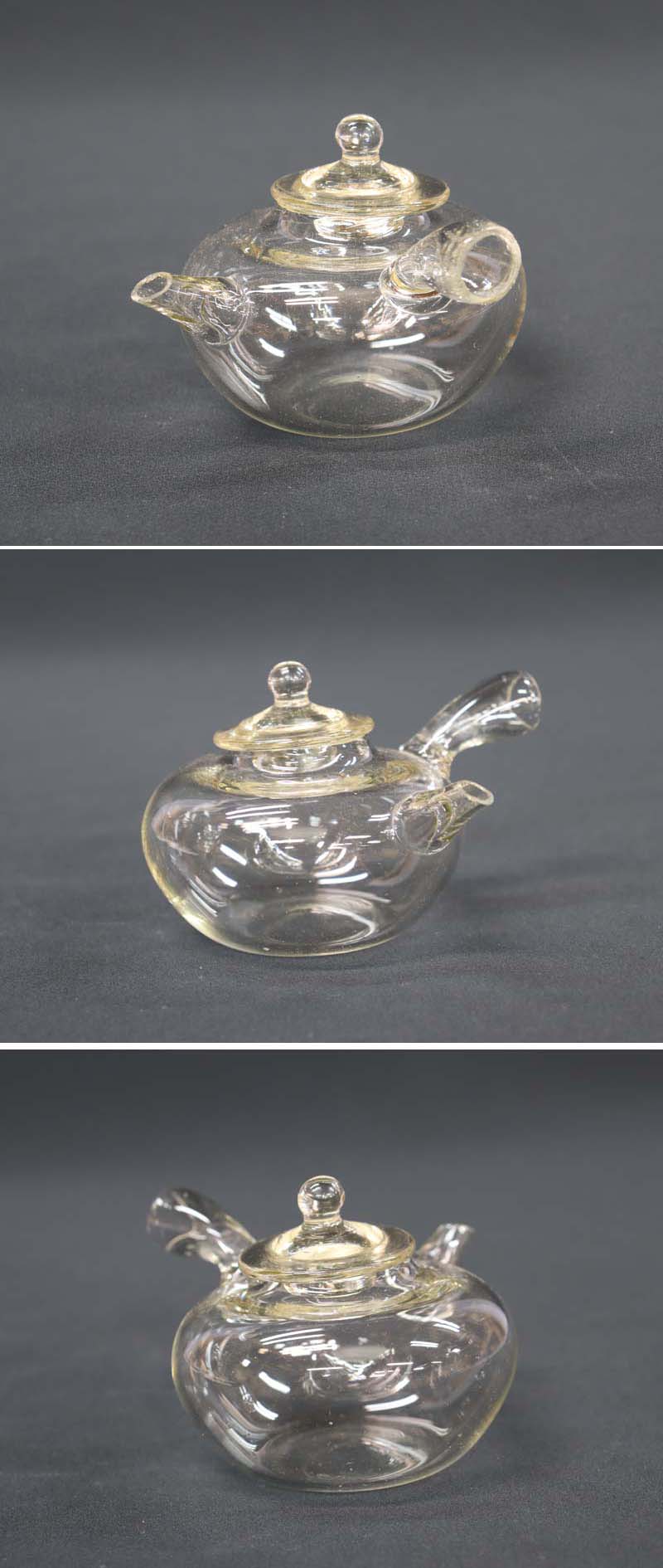 明治初期の冷茶用ガラス急須。ガラスはうっすら緑色を呈しています。