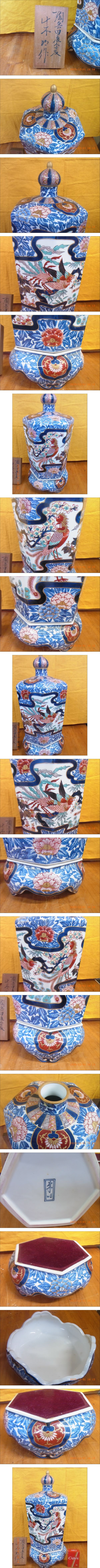 | 商品説明 | 品名:有田焼 名工 藤井朱明作 染錦松竹梅に牡丹と鳳凰図六角飾り壺 状態:有田焼の名工、藤井朱明作の染錦松竹梅に牡丹と鳳凰図六角飾り壺です。高さ約46cm、幅約22cm(対角線)、目立った疵汚れ等無く綺麗な状態です。立札付きです。 ●状態は画像をご確認の上ご判断下さい。 |