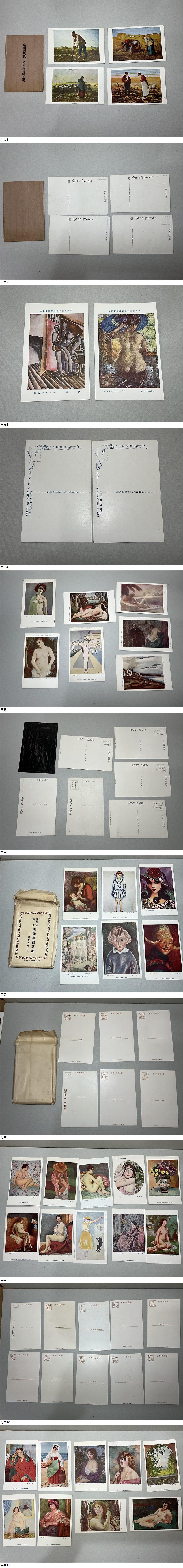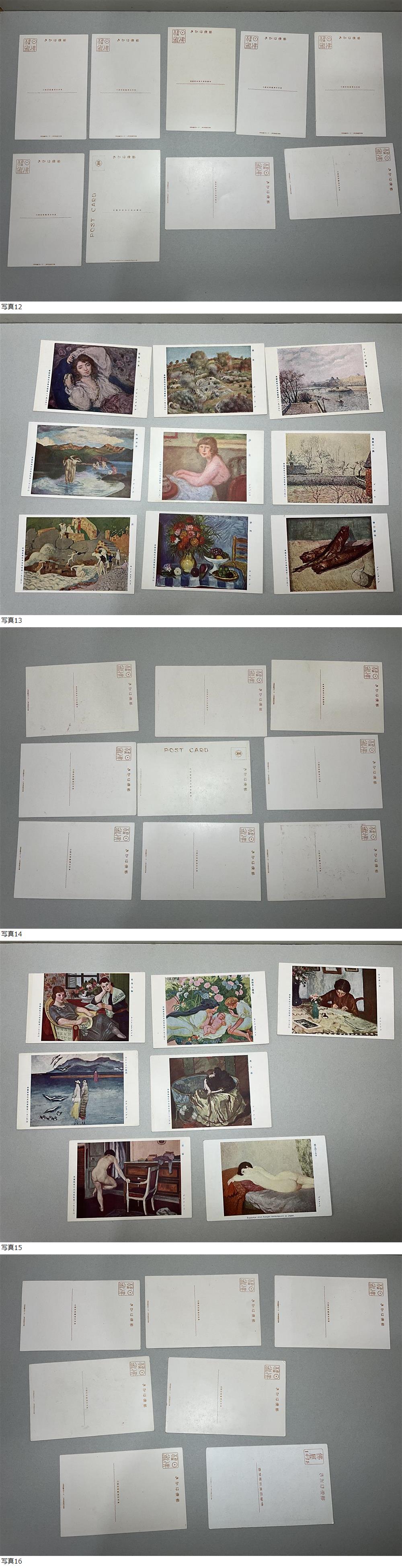 袋と中身の絵葉書に違いがあるようですが、大正昭和初期頃の数種類の美術絵画絵葉書多数です。裏面を真っ黒に塗ってある1枚以外は未使用です。