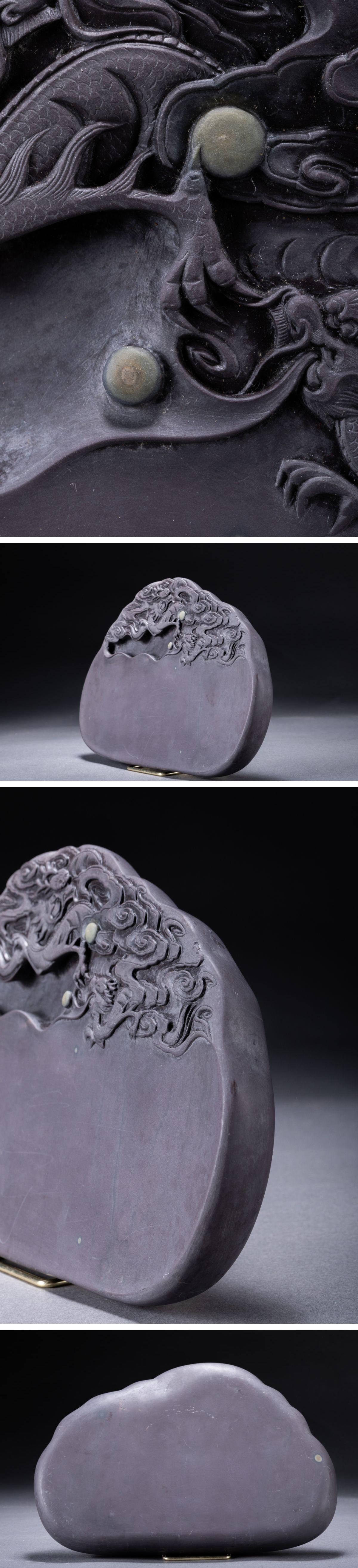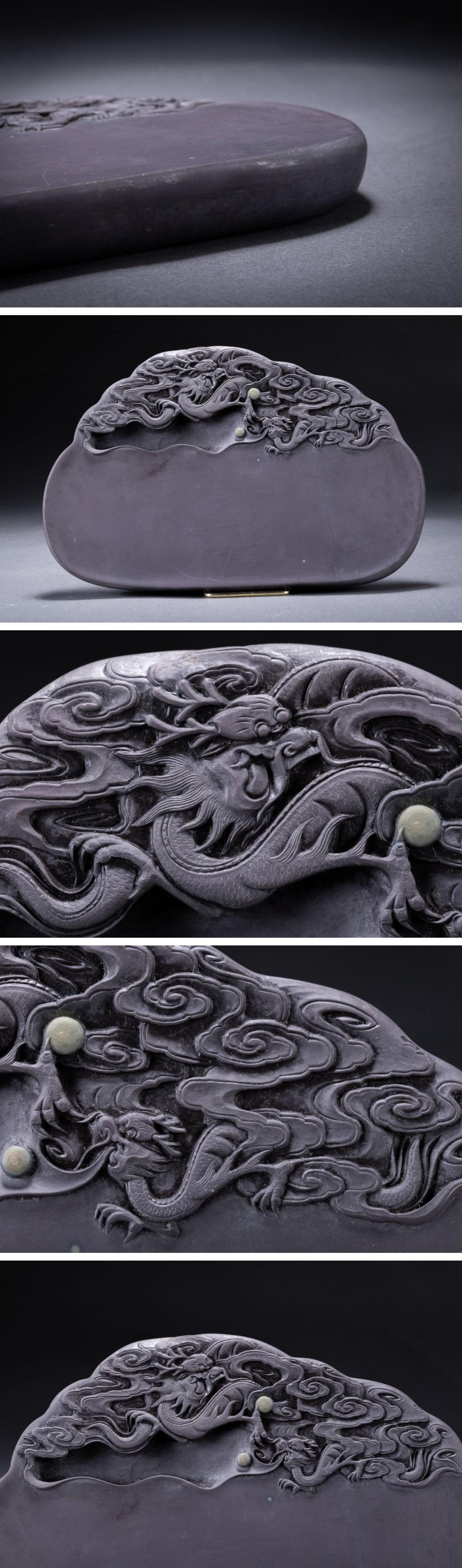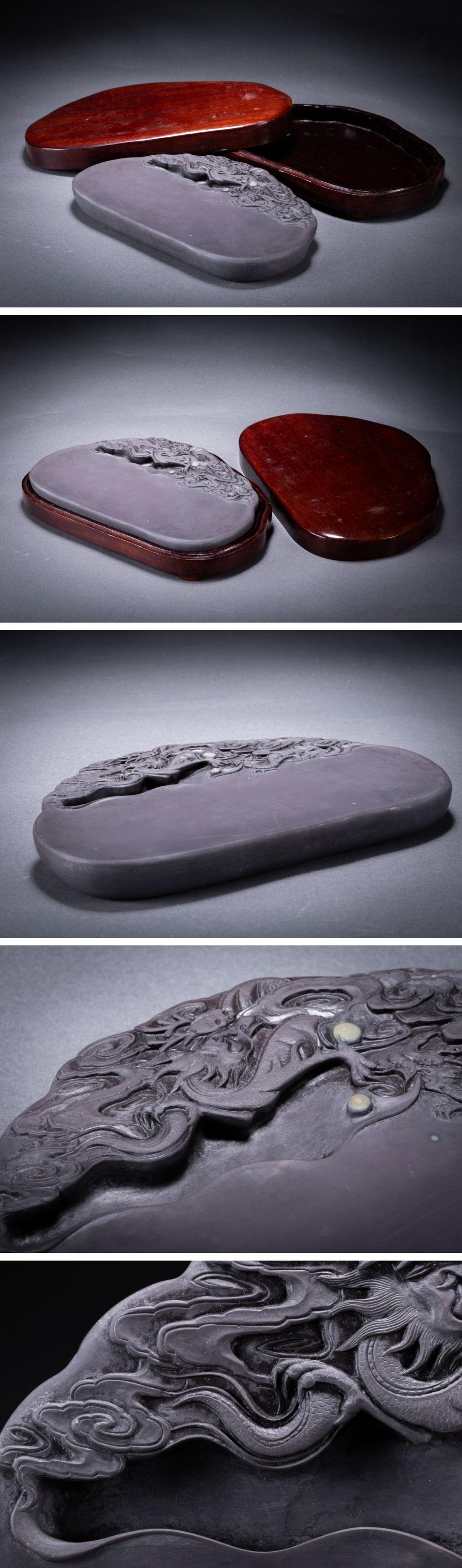 【華】某有名収集家買取品 時代物 中国伝来 古端渓 双龍戯珠紋端渓硯 唐木蓋付き 古美術 骨董品A25090252-TO