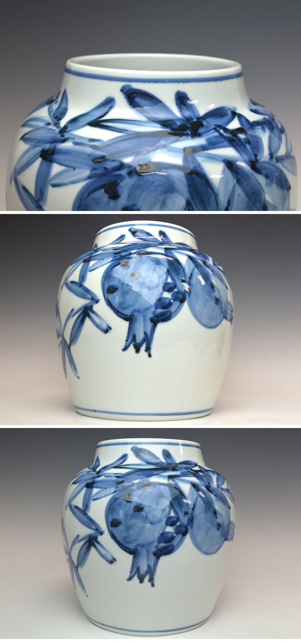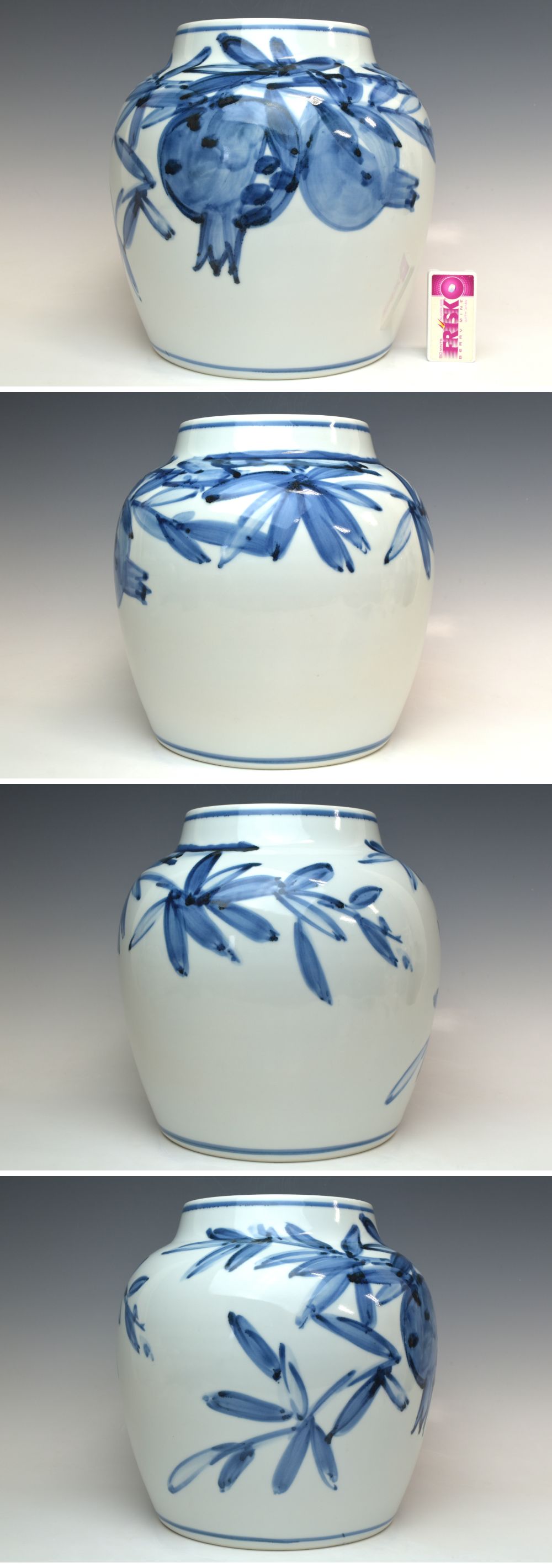 | 商品名 | 人間国宝 【近藤悠三】『染付 柘榴文 壺』作 高さ26,5cm 大型 花瓶 壷 本物保証 W2241【趣楽】 | ||