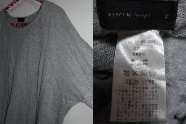 | apartbylowrys ローリーズ 長袖薄手ワイドニット L グレー | |||