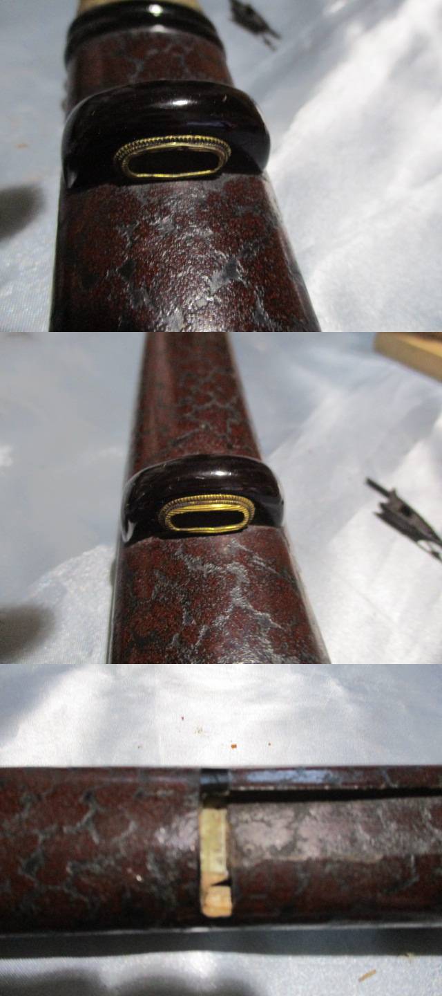 注)柄巻がボロボロで、目貫が取れます(外れます)ので、糸で縛り取れないようにしてあります。