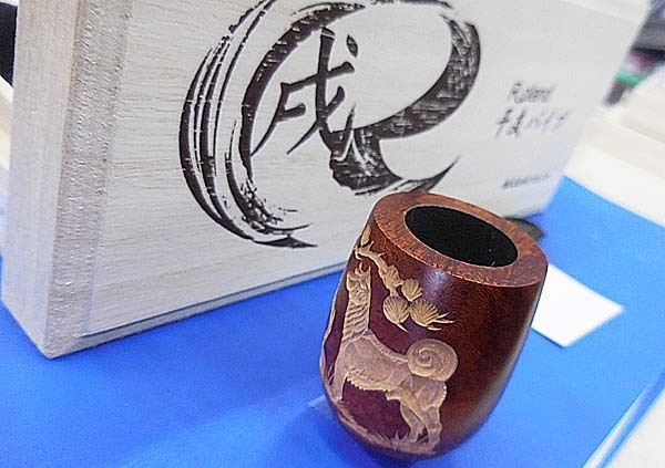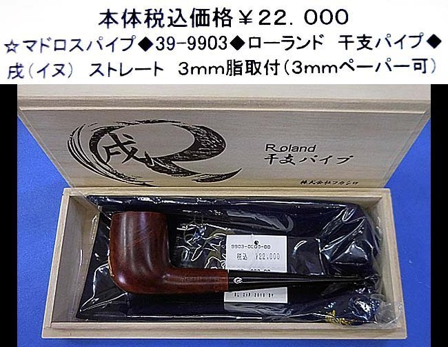 現物を写真撮影、お手元にこの写真の品が届きます。限定50本生産のローランド 干支パイプ。ローランドの選びぬかれたストレートパイプにクリスタルガラス彫刻の技法を用い手作り加工。職人が戌の模様を緻密に描き切った作品になります。正面に戌の絵がを、左側面に松を彫り込んでおります。一本々手作業の為同じ作品でも微妙に仕上げが異なります。特製桐箱に収められた高級作品をお届けいたします。長さ141mmx高さ45mmx幅33mmx火皿径18mmx深さ39mmx重さ31gビンゴが出品している全ての商品は、店頭販売、オークション販売、ショッピング販売等重複し販売しております。時間差で売れ切れや、出荷点検検等で傷が付いていたり破損している事もあります。従いまして、お買い上げ頂きましても出荷出来ない場合も有りますので、予めご了承の上お買い求め下さい。ご注文商品は他商品と同梱配送出来ますので、何個ご注文されても送料は1口分です。1.レターパック発送 ¥600 日時指定不可。(郵便レターパック)。2.宅配便発送税込み ¥880日時指定必須(沖縄/離島は別途価格)。必ず 受取日時 をご指定下さい。(例:15日 18~20 時必着)再配達防止の為。 (業者は当社にお任せ)。3.代金引換発送引手数料税込み ¥1、210 日時指定必須(沖縄/離島は別途価格)。 必ず 受取日時 をご指定下さい。(例:15日 18~20 時必着)再配達防止の為。(業者は当社にお任せ)。