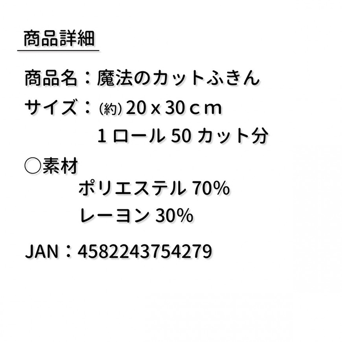 | 約幅20×高さ30cm 1ロール50カット分 |