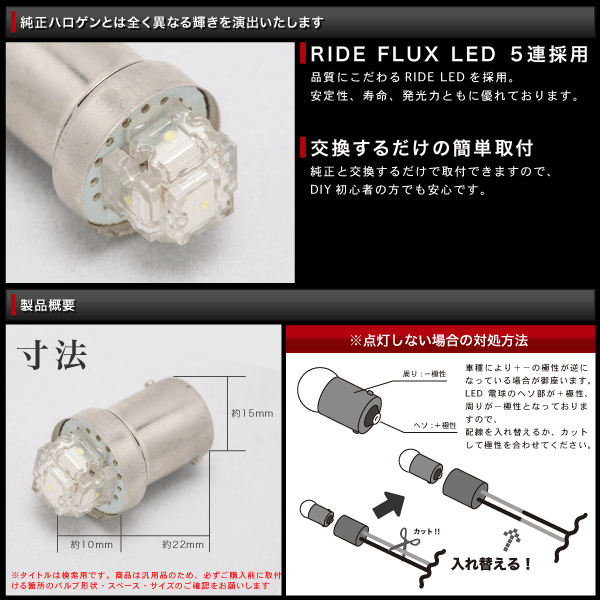 | LED仕様 | RIDE FLUX LED 5連仕様 | カラー | ホワイト(蒼白色:やや青色) |