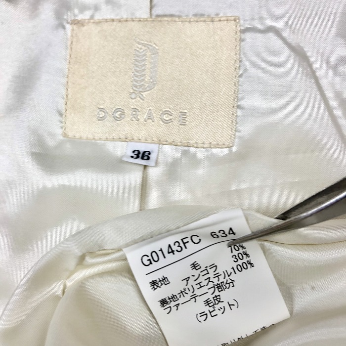 | 商品タイトル | DGRACE ディグレース 36 レディース コート 裏地付き ファー脱着可 ボタン留め 長袖 ウール×アンゴラ(ファー:ラビット) オフホワイト |