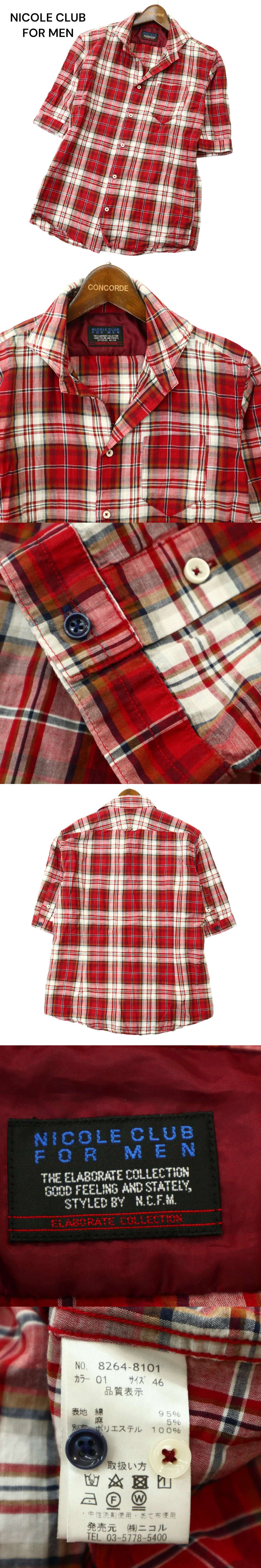 | NICOLE CLUB FOR MEN ニコルクラブ フォーメン 春夏 【麻 リネン混】 襟ワイヤー 半袖 チェック シャツ Sz.46 メンズ 赤系 A4T05114_5#A | |||