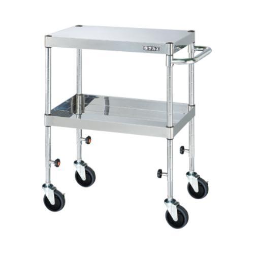 ボルトレスで組立簡単。棚板を逆さにするだけで、皿型・フラット型と組み替えることができます。静粛性・始動性に優れるサイレントエラストマー車を採用。作業用途に応じてワゴンの高さを調整できます。