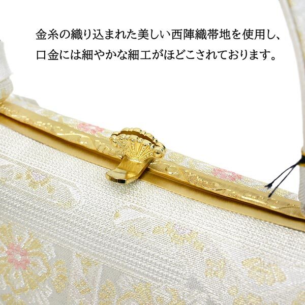 バッグ全体には金糸を織り込んだ上品な西陣織が使われております。