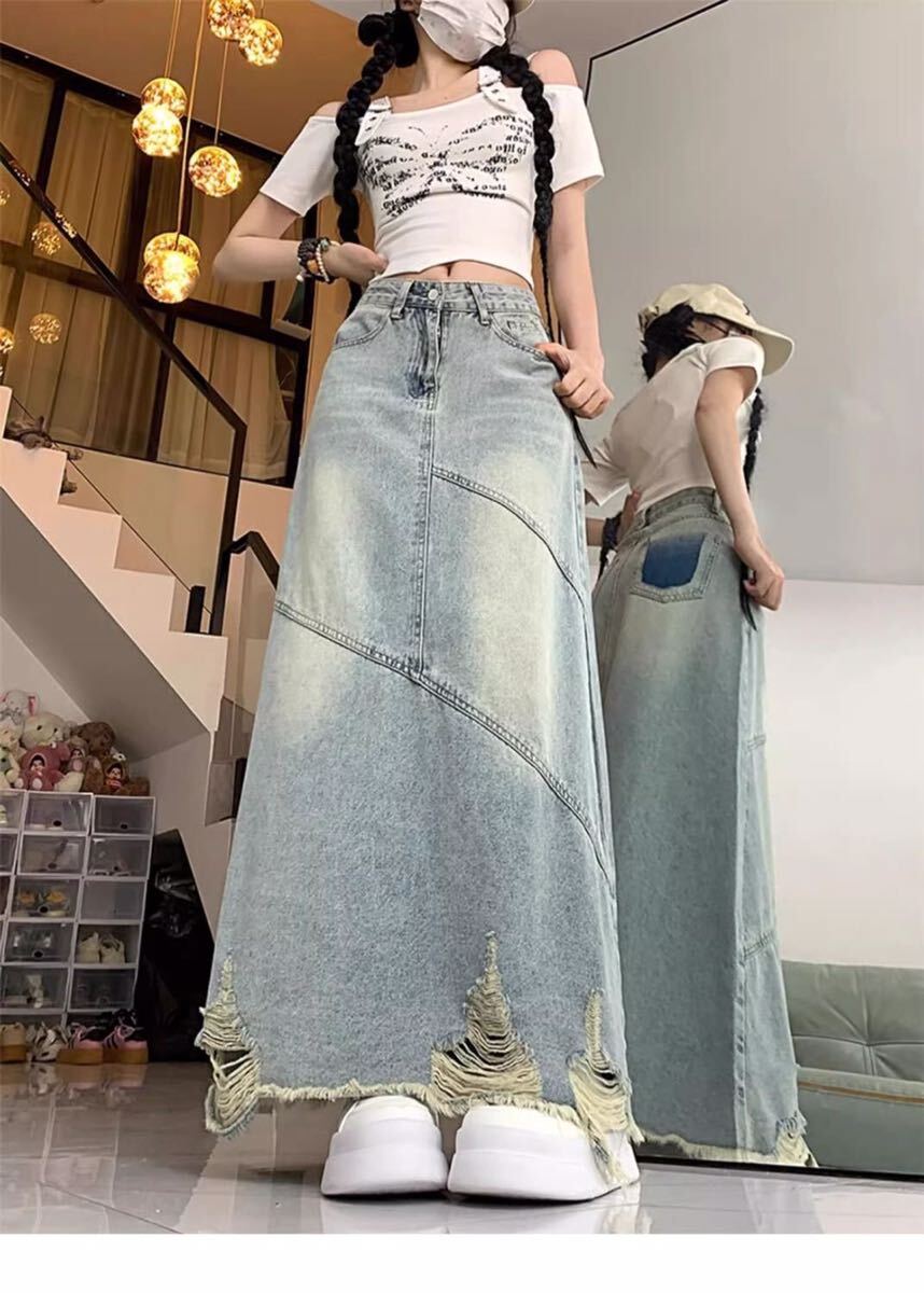デニムスカート レディース スカート デニム ロングスカート デニム ボトムス フレアスカート ロング丈 春 夏 秋 大きいサイズ ハイウエスト Aライン ハイウエスト フレア ダメージ加工 体型カバー オールシーズン お出かけ 普段着 デート 旅行 LKFA023(S-5XL)| 出价者 | 信用 | 价格 | 时间 |