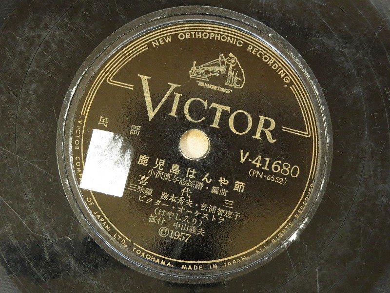 | ★商品説明★ | SPレコードのジャンク品を出品致します。 再生未確認の為、ジャンク品扱いとなります。 商品名 【ジャンク品】 SP #67~70 〔10インチ〕SP盤レコード 蓄音機用 VICTOR&Columbia 他 4枚まとめて 商品詳細 #67 リンゴ園の少女 / 美空ひばり Columbia #68 鹿児島三下り / 喜代三 VICTOR #69 長崎恋唄 / 鈴木三重子 TEICHIKU #70 沖のかもめ / 松平晃 Columbia 動作確認 確認環境が無い為、省略させて頂きました。 付属品 本体のみとなります。 ※商品画像の撮影品が全てになります。 状態 保管の経年や環境から溝にホコリが溜まり、キズや欠け、またラベルにはスレが多く文字が薄くなっていたり、文字の記入、接着が剥がれている商品が含まれます。 ※ただし、個人の感性になりますので、自己責任でご入札ください。 サイズ・重量 商品総重量 / 920g ※多少の誤差がある場合があります、ご了承ください。 | |