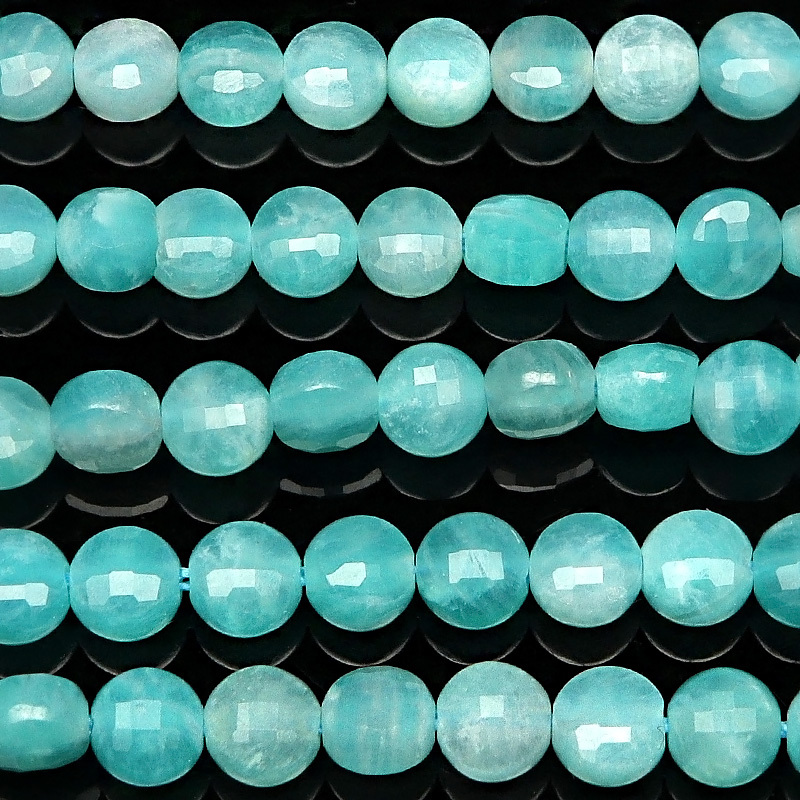 【潤いが感じられる質感が味わい深いアマゾナイトシリカのコインカット[プレミアムカット]です。