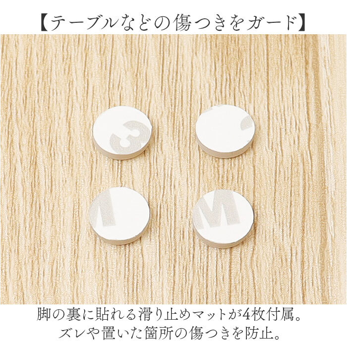 | 注意点 | ※※[付属品]滑り止めマット x 4枚 ※お取り扱いの際は、商品やパッケージなどに記載されている品質表示、アテンションタグ、ご使用上の注意事項などを必ずご確認下さい。 ※本来の目的以外にはご使用にならないで下さい。 ※カメラやモニターの性質により、画像と実物の色の違いがある場合がございますのでご理解願います。 |