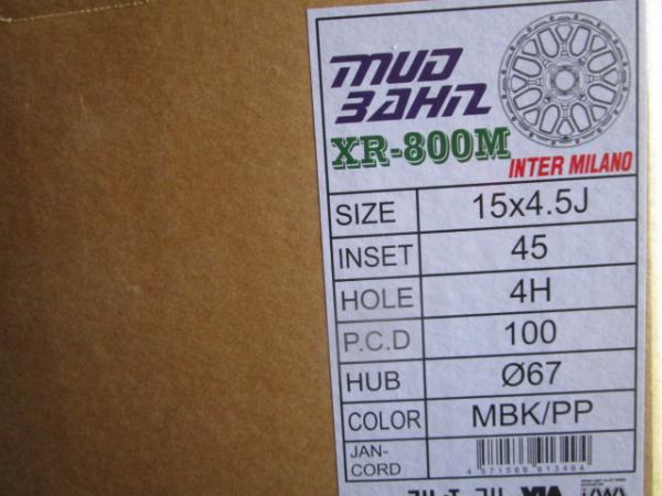 | ホイール詳細 | ホイール:BEST MUDBAHN XR-800M サイズ:4.5J×15 インチ +45 PCD:4H100 カラー:MBK/PP CAP:有り 専用ナット:無し |