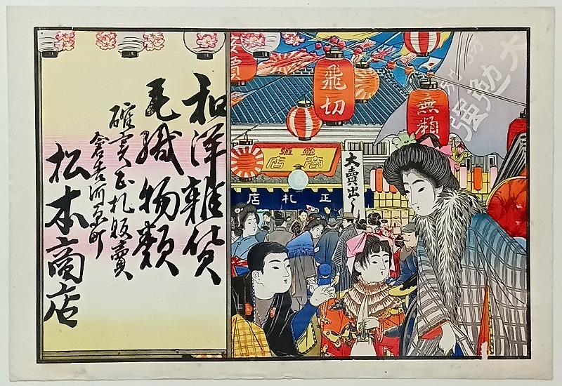 | ■仕様 | 明治時代の、蔵出し(鳥取県倉吉市河原町)「呉服類大売出し」の、古い版画・広告宣伝チラシ です。 尚、古い物なので、経年による劣化・汚れ等がある場合がありますので、 画像にてご判断・ご確認の上、ノークレームノーリターンでお願い致します。 (B396) |